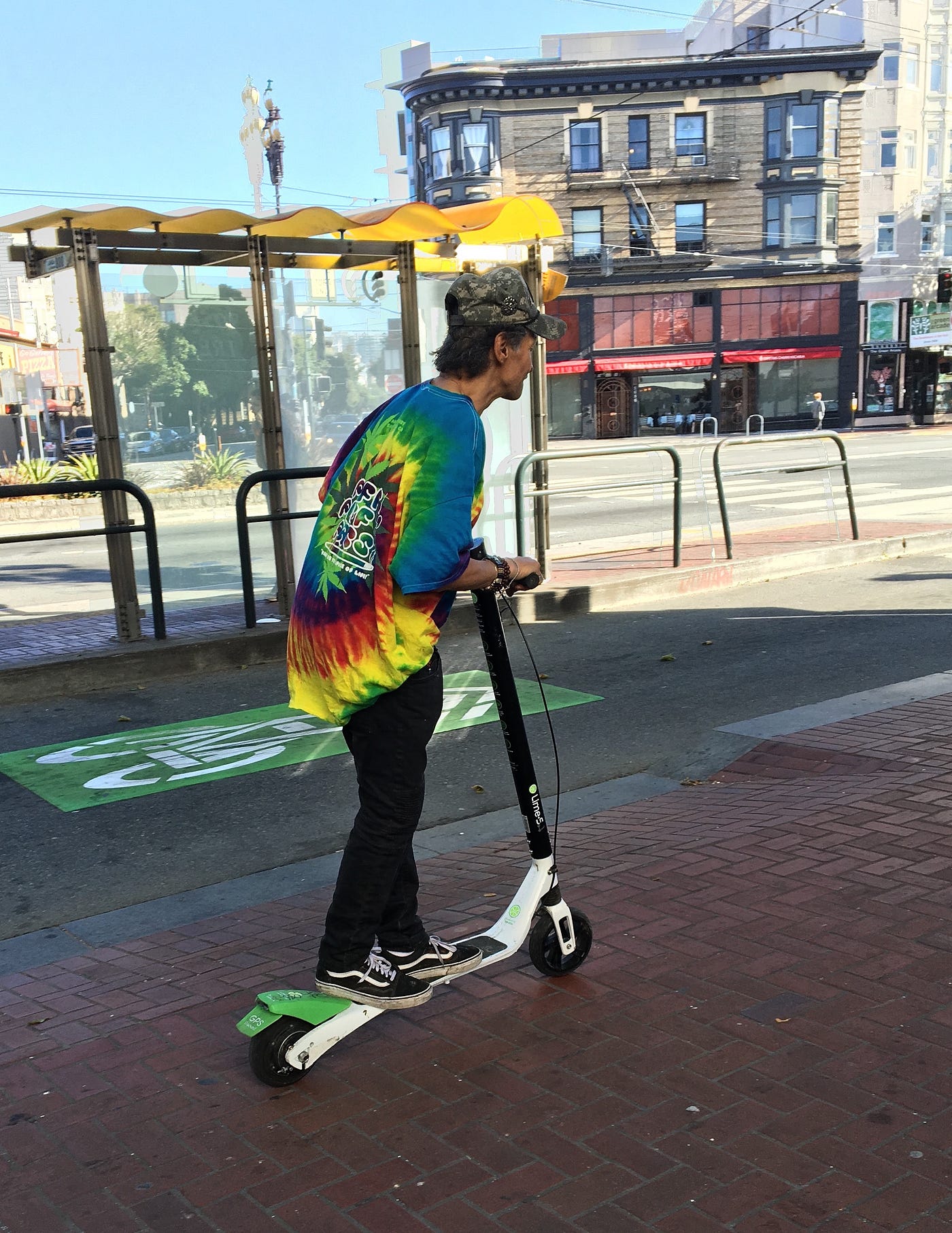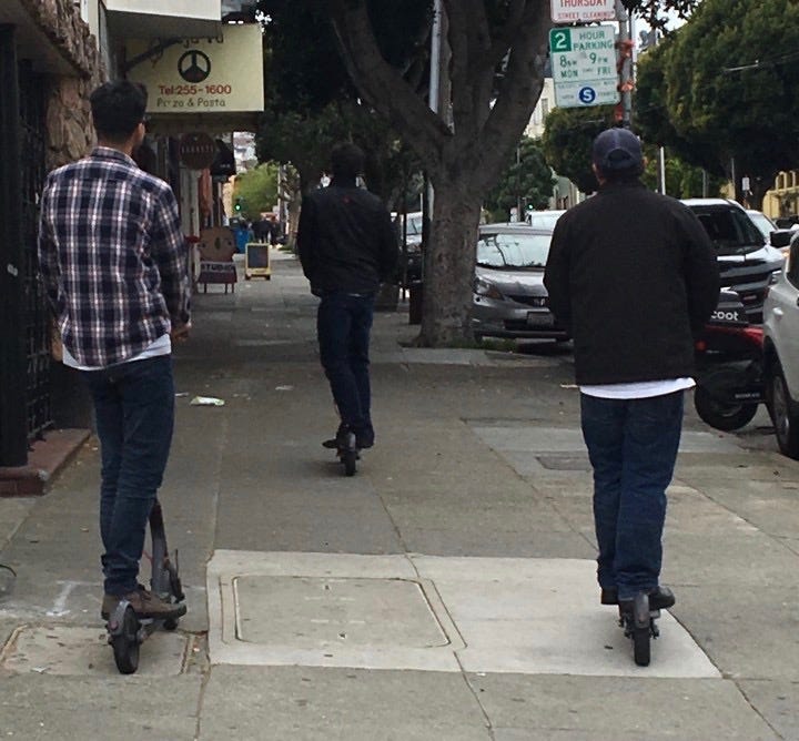 Despite their “roll with it” demeanor, Bird survival relies on fierce competition with similar breeds. Birds are part of an ever-growing electric community, including those referred to as “Limes” and “Spins.” Far from coincidence, all three breeds were released into the San Francisco wild during the same week this past spring, each with the same mission: to win the hearts of unassuming Homo techsapiens. Here we observe a Bird inconspicuously cozying up with a flock of Limes in an attempt to steal their secrets of survival. Given limited resources, it remains to be seen whether competition will result in evolved differences or extinction of one or more of these breeds.