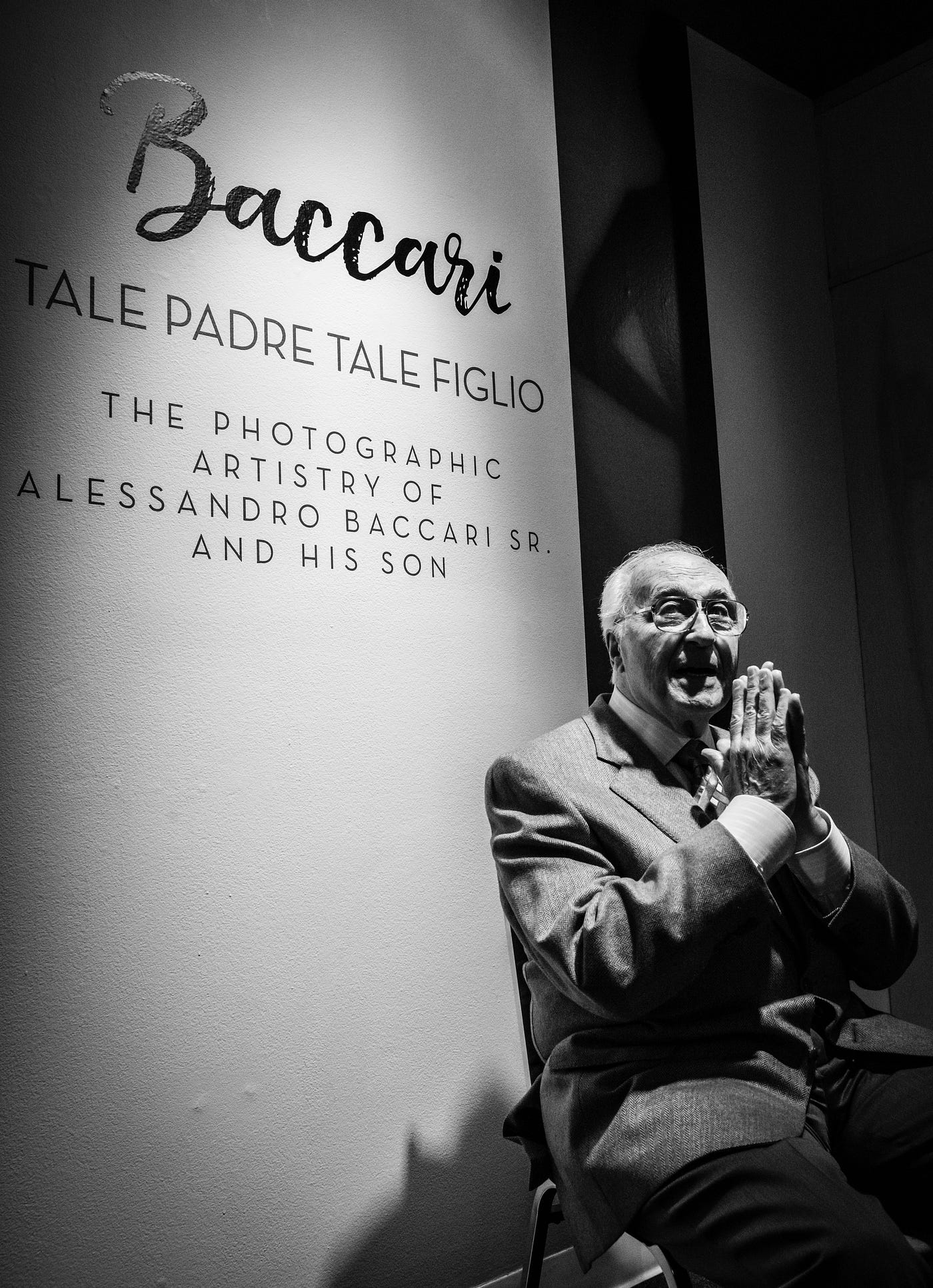 It’s August 2017. Baccari stands at the lectern before a small crowd of admirers at the Museo Italo Americano, at San Francisco’s Fort Mason Center for Arts & Culture. He’s here to introduce Tale Padre Tale Figlio (“Like Father, Like Son”), a joint photo exhibit illustrating the unique insights into composition and design he and his father shared.