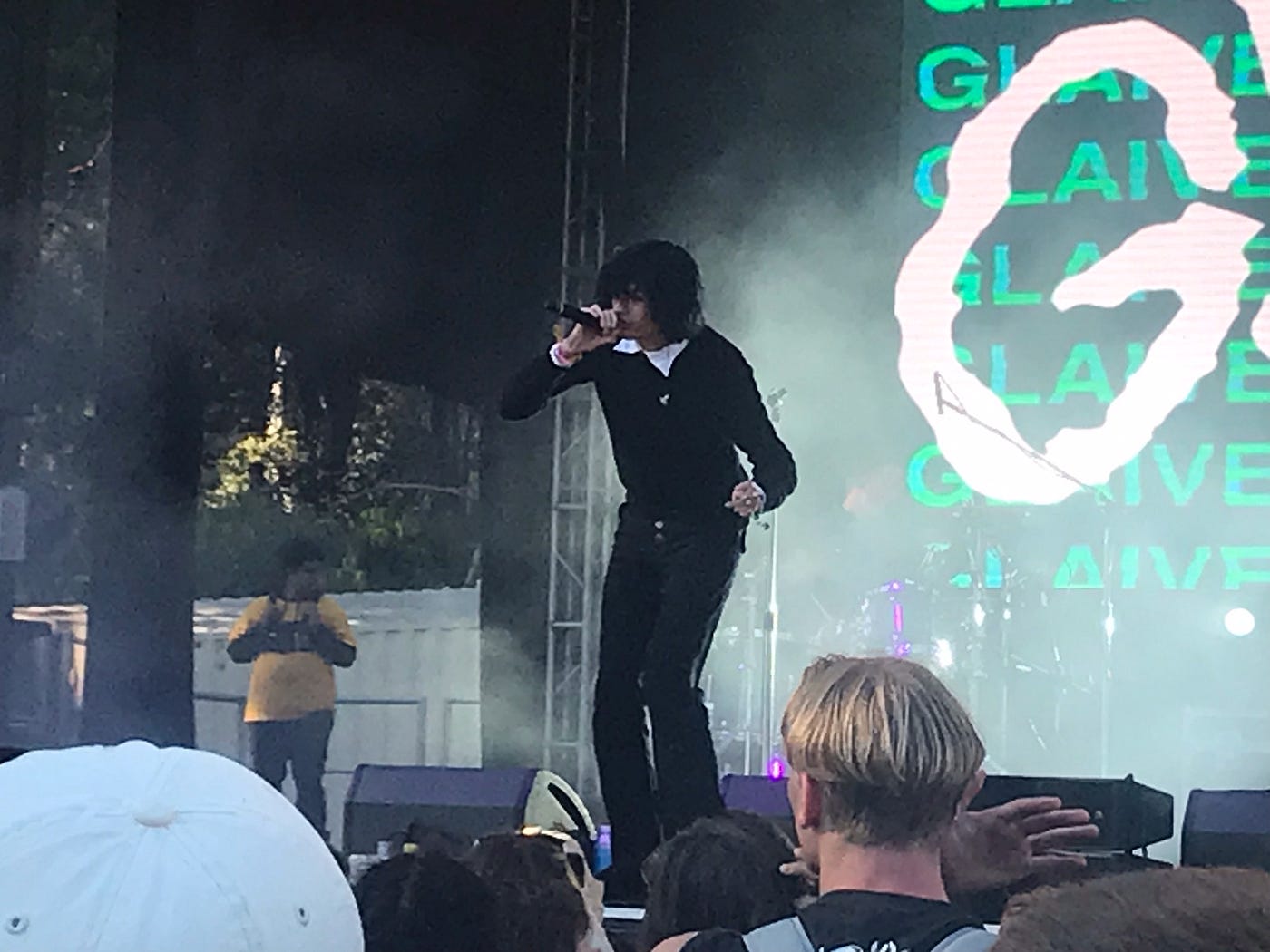 Gecs’ schtick seems a bit tame at this point, and though their self-proclaimed “silly songs” still rock, they’ve still been doing the same thing for about three years, while the hyperpop genre’s split up and transmogrified into more interesting things. Representing this new wave was Glaive, who dressed like a Motown star despite confessing he’d just learned how to put on a tie. He was one of the most magnetic performers I saw all festival, and it helped that he was playing the Panhandle, a small stage where it’s easy to see the artist in the flesh. His music wasn’t dissimilar in lineage and intent to the awful mall-pop I heard from Kenny Hoopla on Saturday, but unlike Hoopla, Glaive could sing and write — and dance.