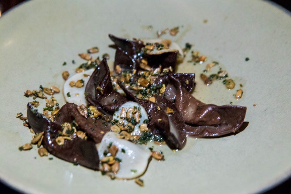 As we moved on to amberjack crudo in blood orange vinaigrette, accented with taggiasca olive tapenade, lemon drop chilies, ogo seaweed and bronzed fennel, the clean but bold lines of the raw fish dish felt like a direct partner to the rich pastas to come, but also the palate cleanser beforehand.