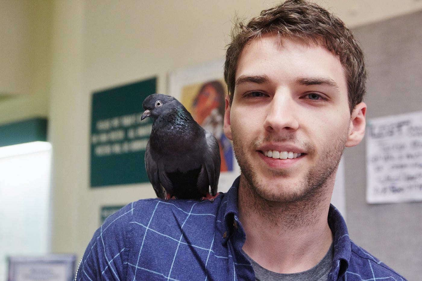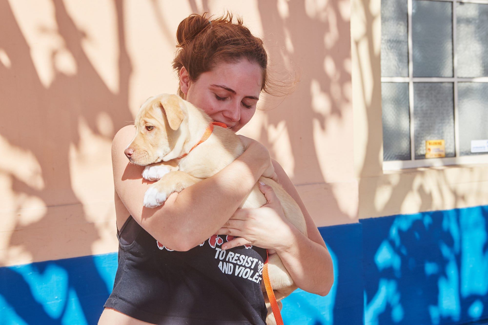 We wouldn’t mind coming home to puppy hugs. Bonus points for the D.A.R.E. T-shirt.