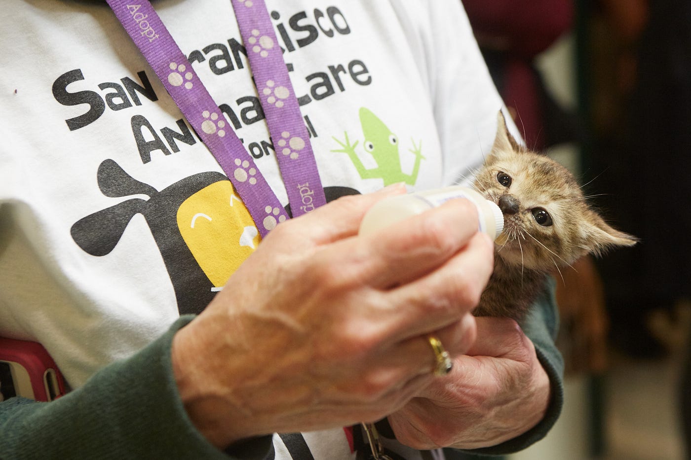 On October 30, pet owners and lover from around the Bay Area flocked to San Francisco Animal Care & Control’s Pet Pride Day in SOMA. Although the outdoor festivities were cancelled because of wind and rain, the SFACC kept the fuzzy party happening inside — which included photo booths, pet-adoption opportunities, microchipping, pumpkin decorating and a bake sale to raise money for good dogs. Adoption fees were waived for qualified adopters, giving pet lovers another reason to add a furry or feathered friend to the family. We captured some of the best and furriest moments of the day.