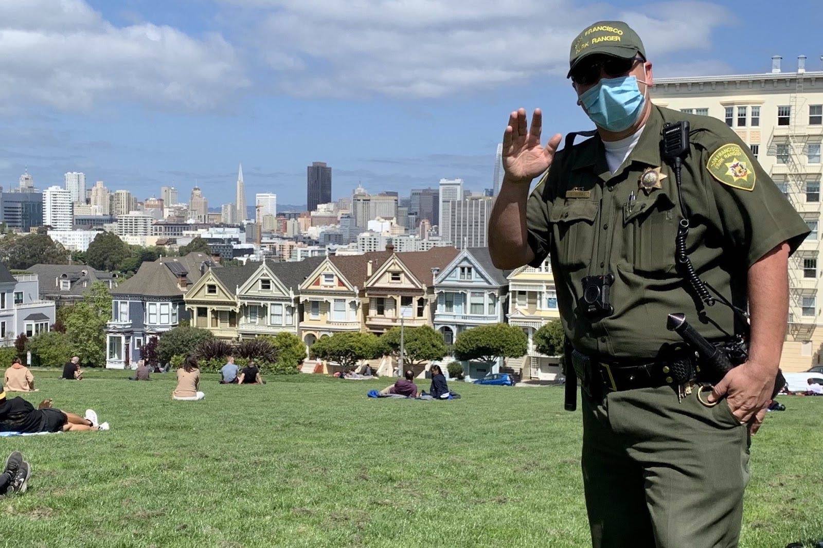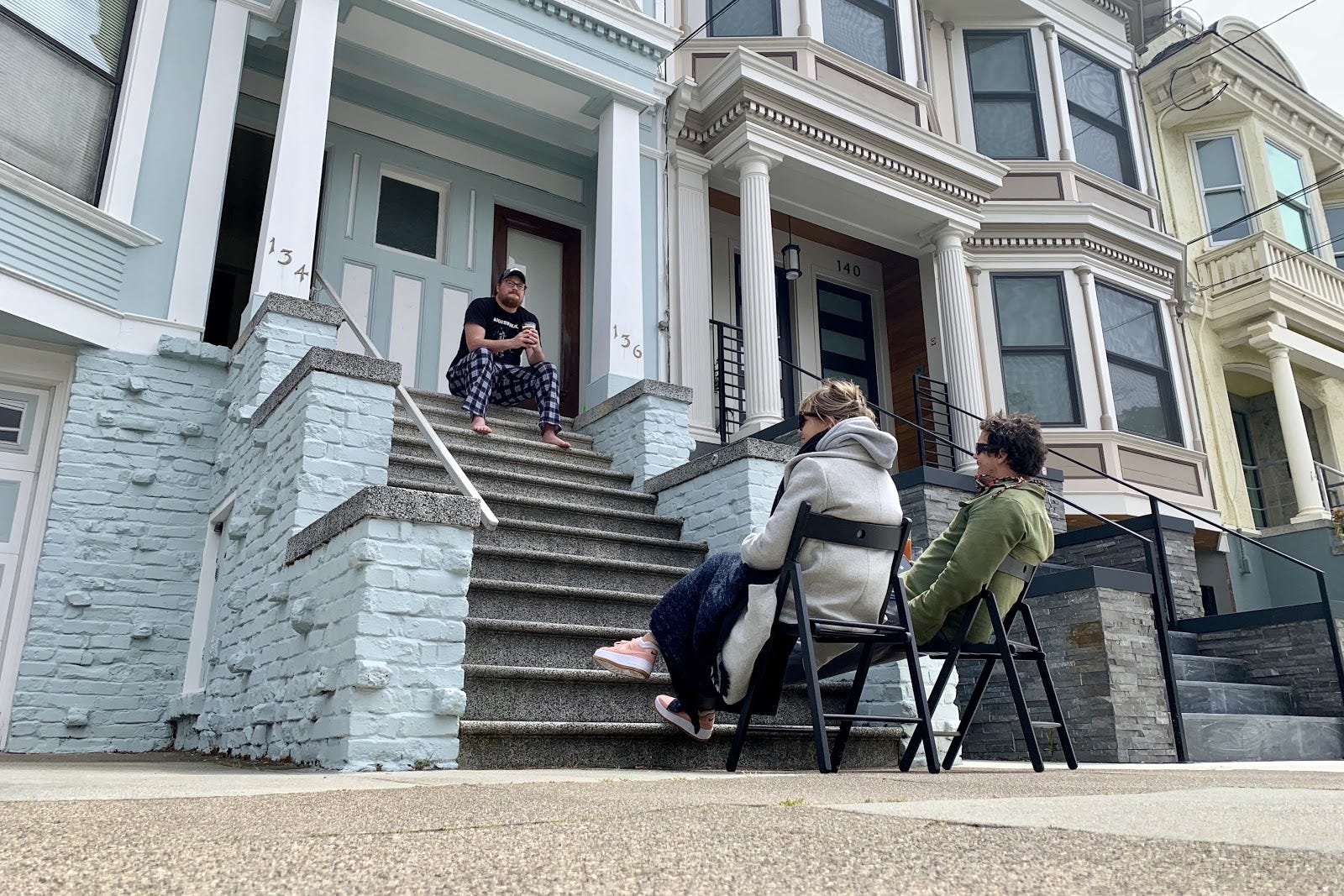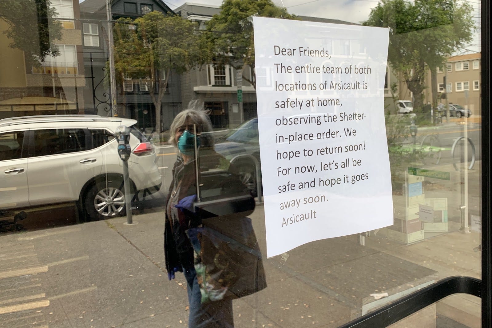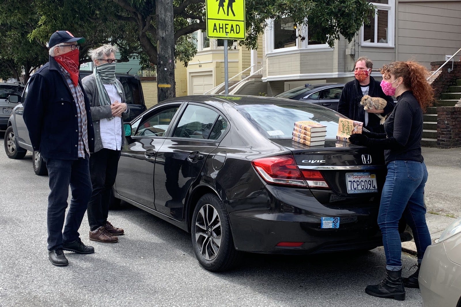 Friends relax while social distancing on a beautiful Saturday morning.San Francisco street fashion in 2020.A long line of customers waiting to get into the Yin Xing Food Co. grocery store on Clement Street; only a few patrons at a time are allowed into the store.A cyclist waits at a crosswalk on the corner of Clement and Arguello.A masked woman stares into the window of a closed bakery.Author Alia Volz holds an impromptu book signing with three friends and a rabbit in attendance. She was supposed to start a multi-city book tour on April 20 for her memoir, ‘Home Baked.’ Unfortunately, the tour was canceled due to Covid-19.UCSF pharmacy students collect PPE donations for hospitals. If you have unopened hand sanitizer, boxes of glove, disinfectants, goggles, or unused N95 or other surgical masks, you could help save lives. Click here to find out how to donate.A person walks by a shuttered store covered in street art and graffiti.A San Francisco park ranger maintains social distancing rules in Alamo Square Park by approaching groups of four or more to confirm that they all live together, are staying far apart from others, and are taking active safety precautions.Friends take a walk for some fresh air.A San Francisco resident poses on the hill at Corona Heights Park wearing a shirt showing his pride for his city, along with a Phoenix Rising pin, the symbol on San Francisco’s flag illustrating the city’s ability to rise from the ashes and regenerate.We took photos of each other as we chronicled a new normal.