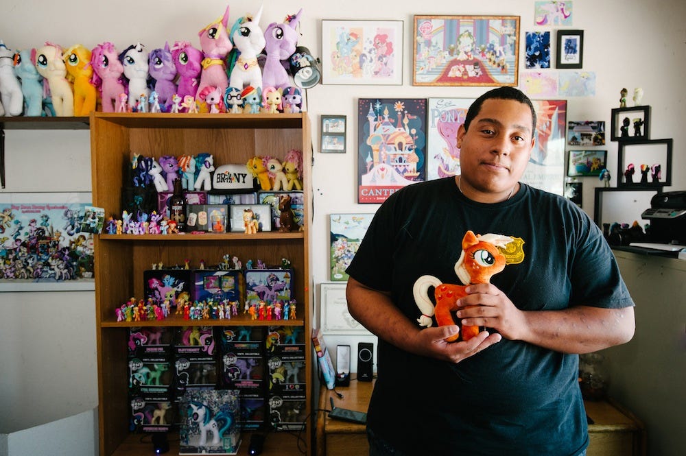 With this photography project, I document some of the Bronies and Pegasisters in the Bay Area. It’s an ongoing project and could take years to complete. Here, I share a glimpse of the local community.