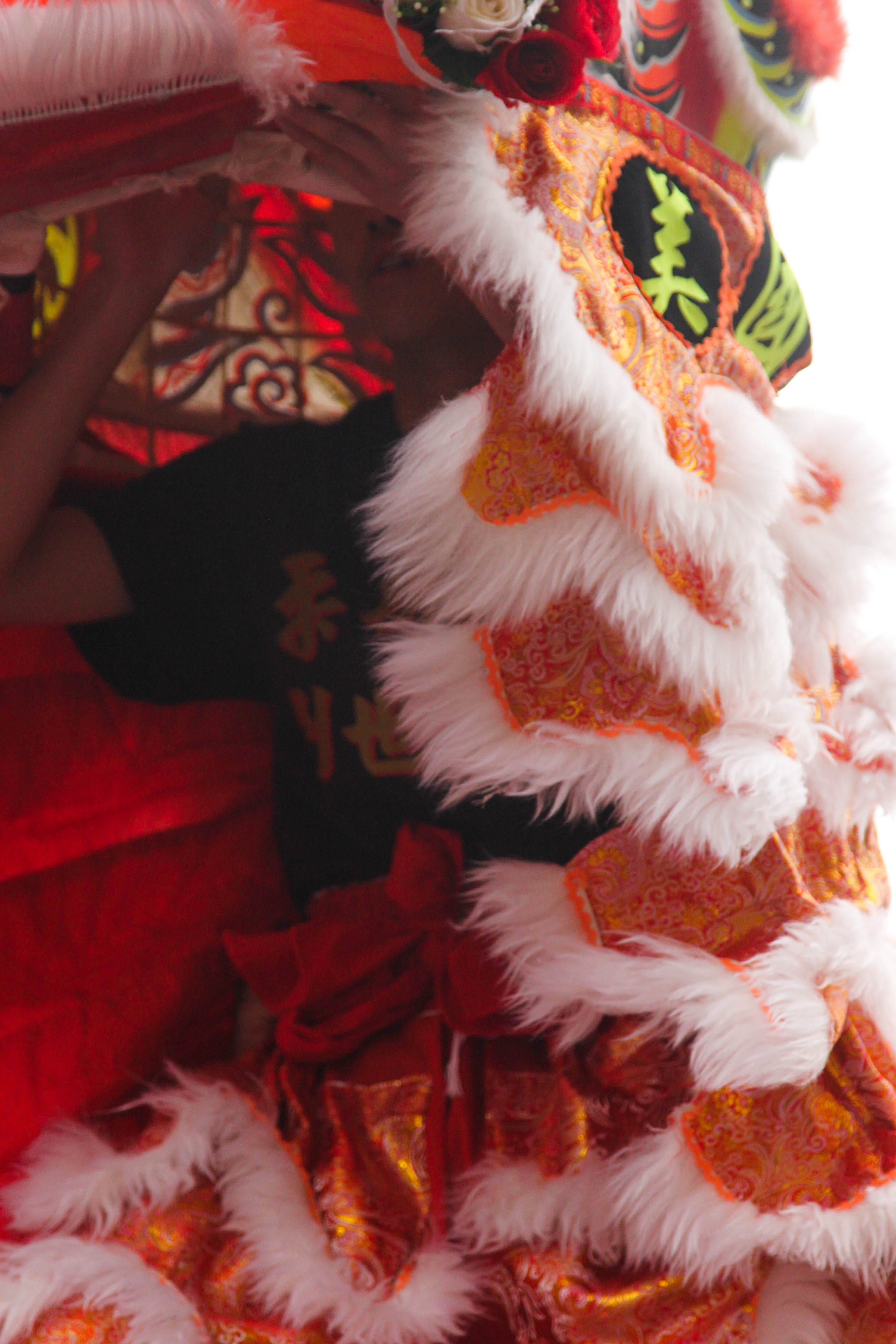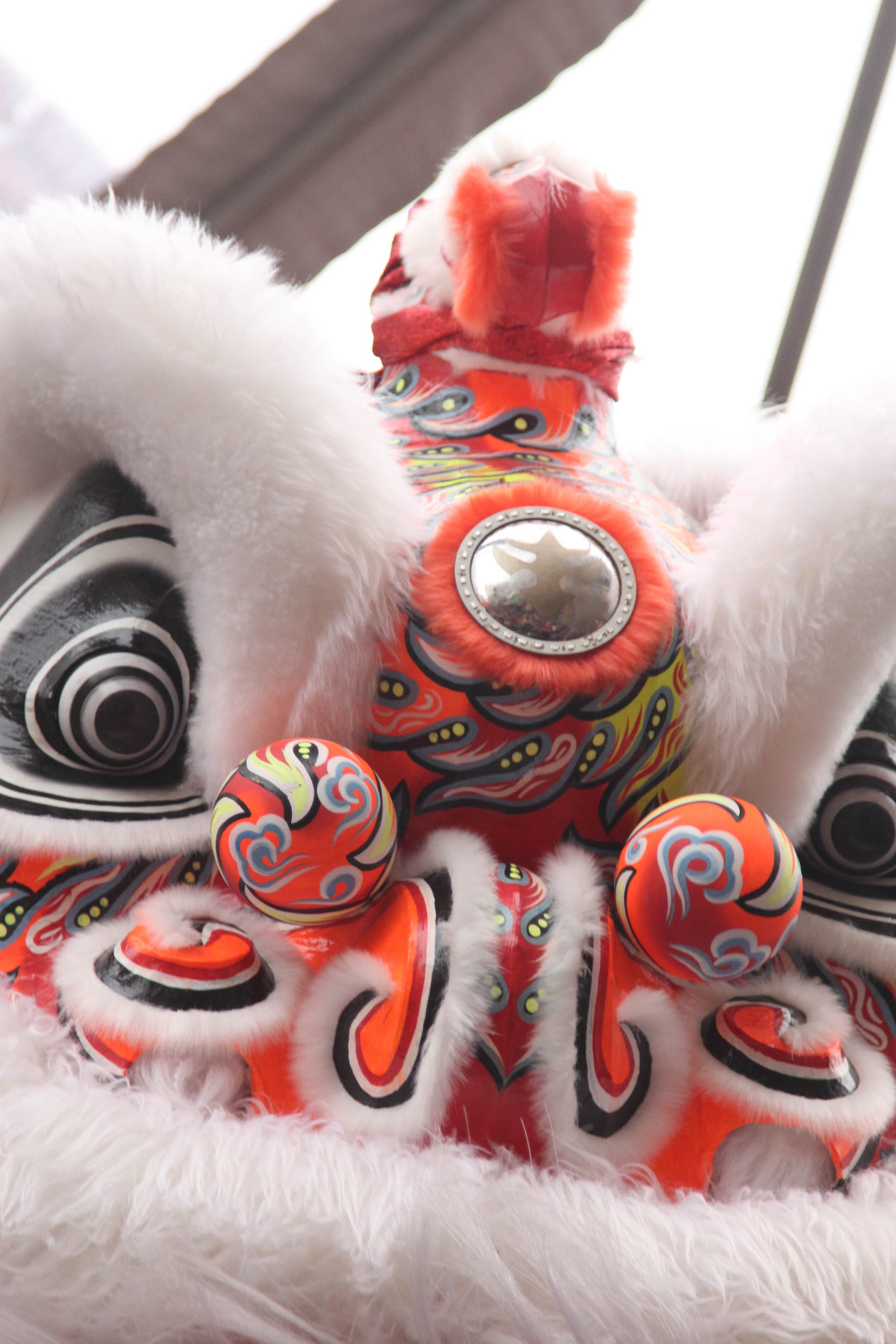 When it comes to the actual lion head, each one is painstakingly crafted, a sculpted bamboo wicker frame layered with paper-mache before being hand-painted and decorated. Each lion is commanded by two performers — one as the head, one as the tail — requiring vigorous training and discipline to be able to dance beneath the costume with limited visibility. Mastery of the lion requires complete trust in one’s teammates, great physical strength and years of practice.