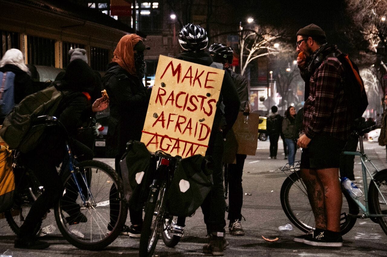 Inevitably, the right has tried to paint the protest and its aftermath as some sort of attack on free speech. “The left is absolutely terrified of free speech and will do literally anything to shut it down,” said Yiannopoulos, who widely advocates hate and/or violence against women, minorities, feminists, Black Lives Matter protesters and pretty much anyone he disagrees with.