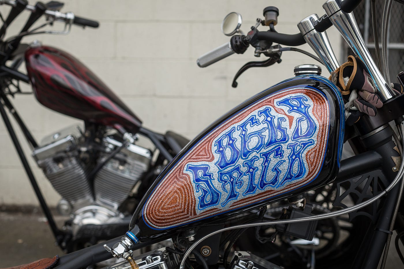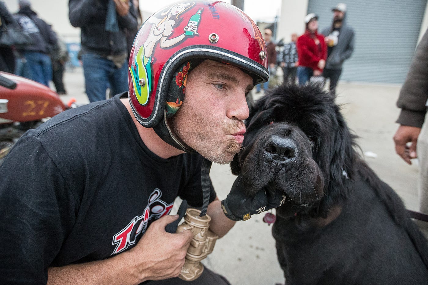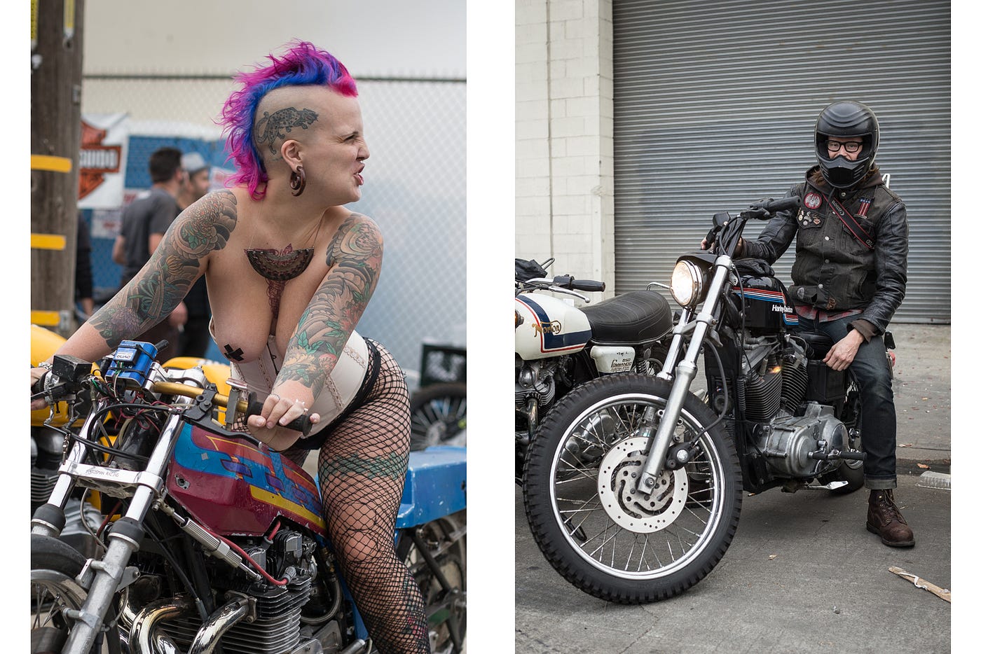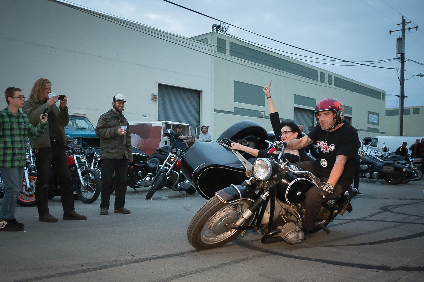 Leather jackets, full body tattoos, and heavy beards. It would almost sound like the Folsom Street Fair if not for the overwhelming aroma of burning rubber. Every year in October a handful of enterprising gear heads start building choppers from whatever bits and pieces they can kludge together for under $1,000. Once the official website posts the go-ahead, they have one month to build their hearts out. Last Sunday the buzzer rang and the Dirtbags gathered for a 100-mile ride and a party in the industrial district of Bayview.