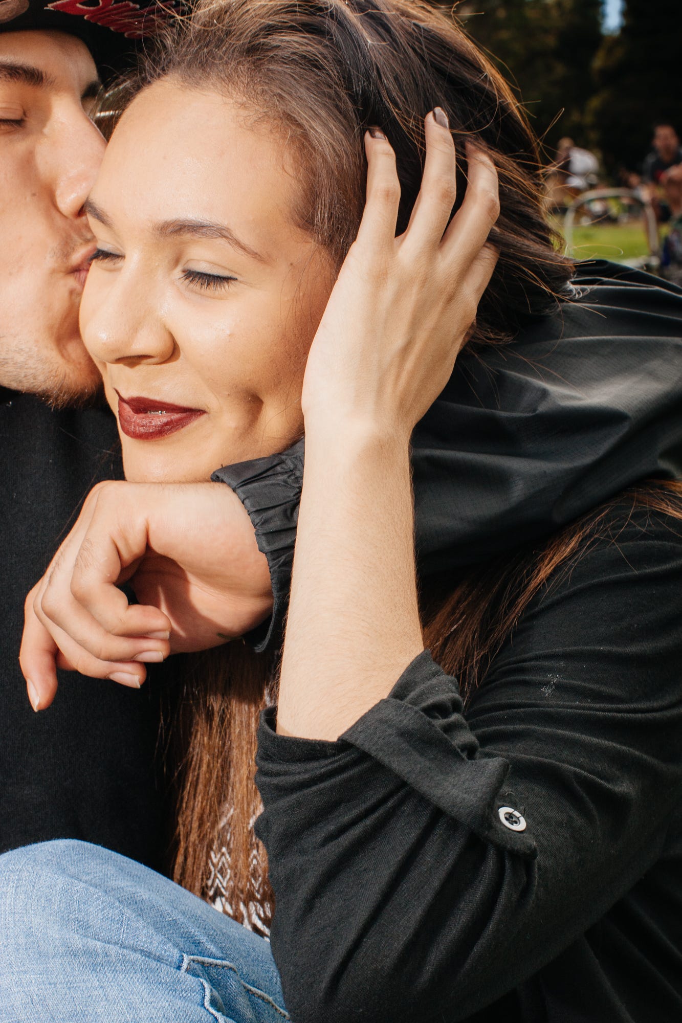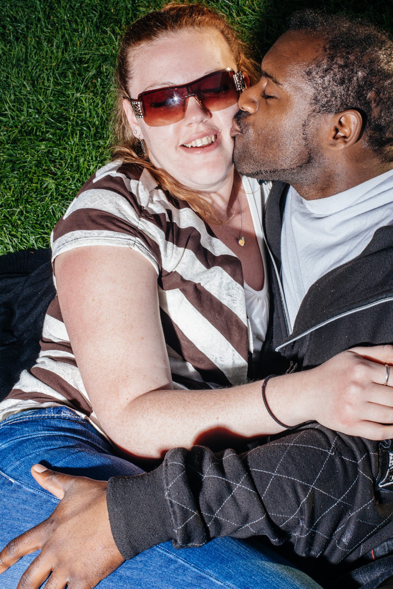 I survey the crowd looking for a couple that is clearly embracing, obviously a couple with a physical attraction to each other. Then, I introduce myself and explain the project. There’s often a lot of joking about how funny it is that a lady is walking around Dolores Park taking pictures of people making out… because it is kind of ridiculous. It’s always fascinating to me who’s interested and excited to be photographed and who isn’t.
