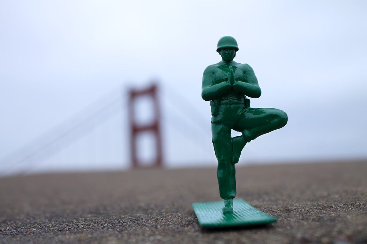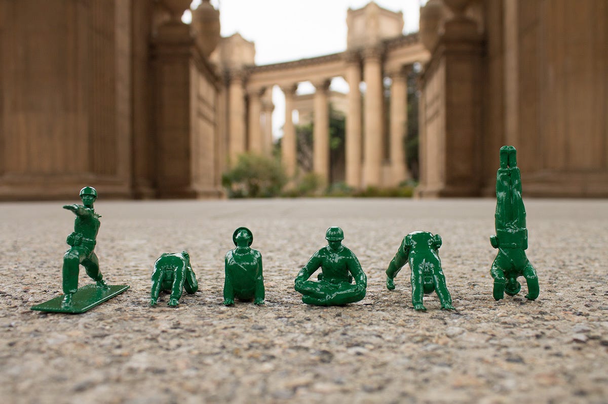 Editor’s Note: Plastic green army men are among the most classic toys of all time. They’re so recognizable, it’s hilarious (and so cute) to see them doing anything other than crouching with a gun — and it’s especially entertaining to see them doing something as peaceful as yoga. Dan Abramson 3D printed a set of the little guys in various yoga poses and photographed them dropping dogs all over San Francisco. If you’re into his creations, check out his Yoga Joes Kickstarter campaign.