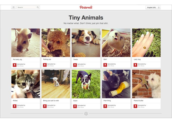 I realize that Pinterest is really simple. It’s a digital pinboard that you post pretty pictures on. Do you like that outfit that that chick wore to that thing? BOOM. Pin it. Do you like that picture of food? BOOM. Pin it. Do you like that “anything that can be photographed”? BOOM. Pin that shit. Honestly, it’s a really easy way to tell people what you like, and I get that. But here’s the thing: I’ve got PLENTY to say but not that much to show you. So essentially, I’m fucked. With Pinterest, I simply cannot keep up with the rate at which things are shared.