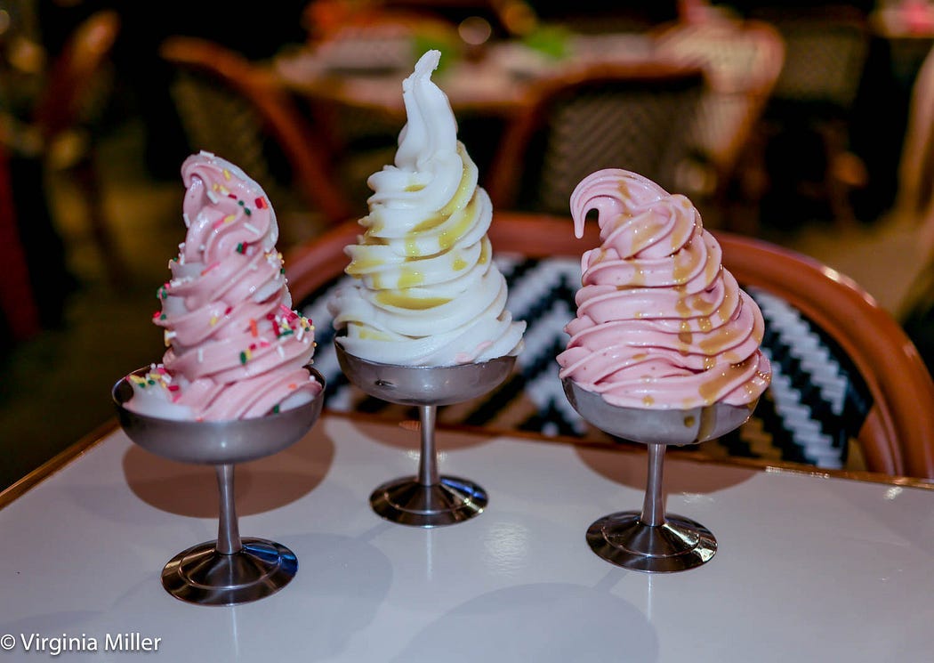 Designer Jon de la Cruz of DLC-ID goes with coastal Italian influences and a massive outdoor bar area that can be fully open air or zipped up with window-lined covering when it’s chilly. Large screen TVs are always a pet peeve for me outside of sports bars, but with direct ties to the sporting events going on a few feet away, TVs are forgivable. Given weekday lunch hours and game day early hours on weekends, the pizzeria is easily about that view. With expansive spaces to eat outdoors around Thrive City, a walk-up window serves slices and gelato to-go but dining-in is the way to take in the view with drinks.
