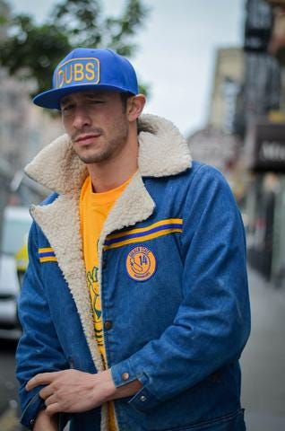 Impulsively, I bought the jacket and threw it on, showing up to the game feeling like a boss. It was an instant conversation starter—everyone wanted to know where I had gotten such a beaut. Turns out, that was exactly the intention of the mastermind who made it: local designer Luke Fraser, founder of the company Bart Bridge, which offers Bay Area fans a local and more provocative alternative to the “official” big-box apparel.