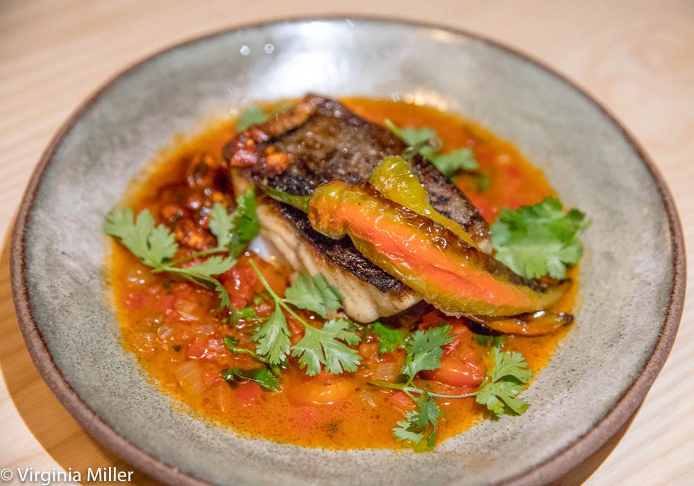 Raw halibut diced up with tiny bits of preserved lemon and green strawberries and scooped into endive cups is a worthy “crudo” or light seafood starter, even if I wanted more or bigger slices of the green strawberry and lemon. A grilled squid salad over shelling beans in salsa macha feels simple and heartwarming, the warm mash of beans and squid enlivened by the salsa macha — again, which I could have used a bit more of — a “salsa” from Veracruz, Mexico, which is actually a rich chile oil doused with dried chiles, garlic, and nuts (typically peanuts or pumpkin seeds). I first fell in love with salsa macha in Mexico so glad to see it trend the last couple of years. At this point, it’s officially “hot,” as I’ve had it on dozens of menus locally and recently started to see it peek up in other U.S. cities.