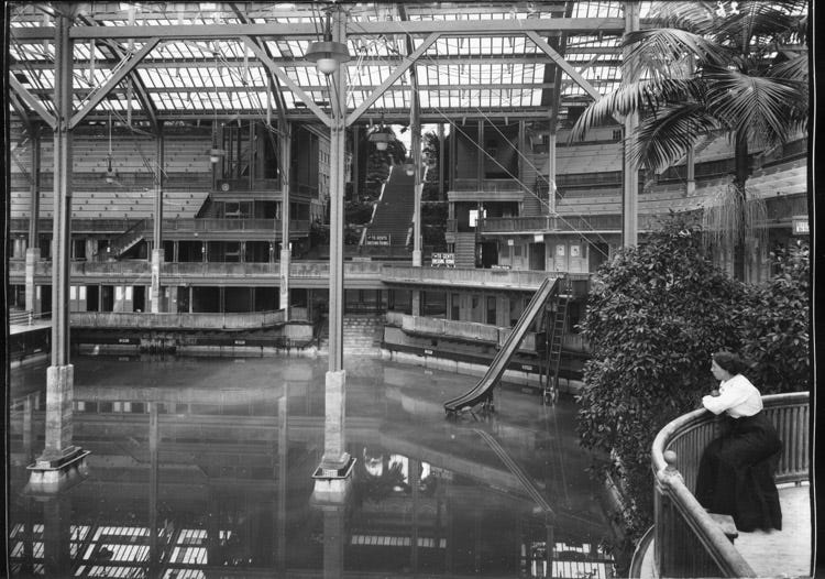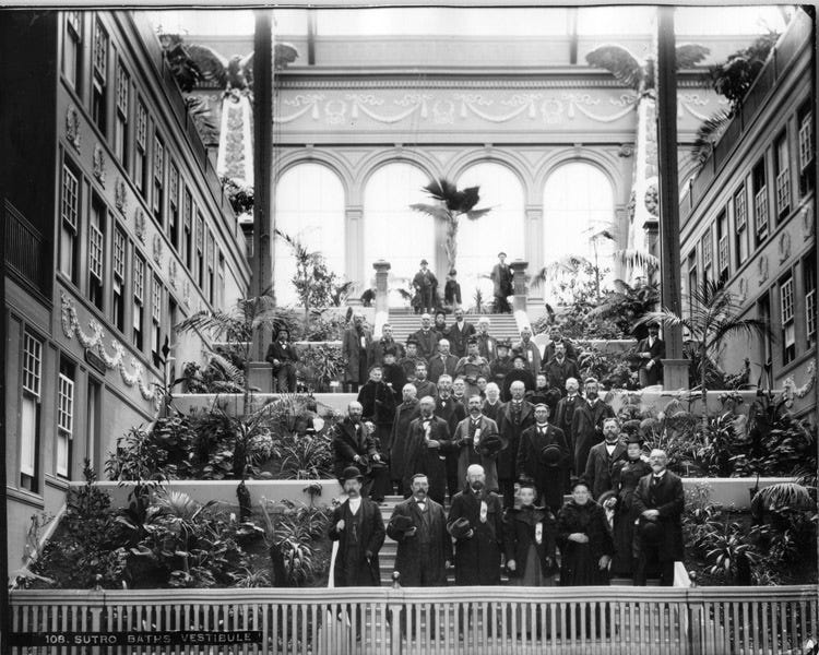 When Sutro Baths opened on March 14th, 1896, it was the definition of opulence in San Francisco. More than 100 years later, beautiful photos of the building are still being uncovered. A private collection of photos from the turn of the century, recently made available to the Western Neighborhoods Project, gives a more intimate look at the baths in their heyday. Adoph Sutro’s grand natatorium took about six years to build and played host to as many as 10,000 swimmers and spectators at once.