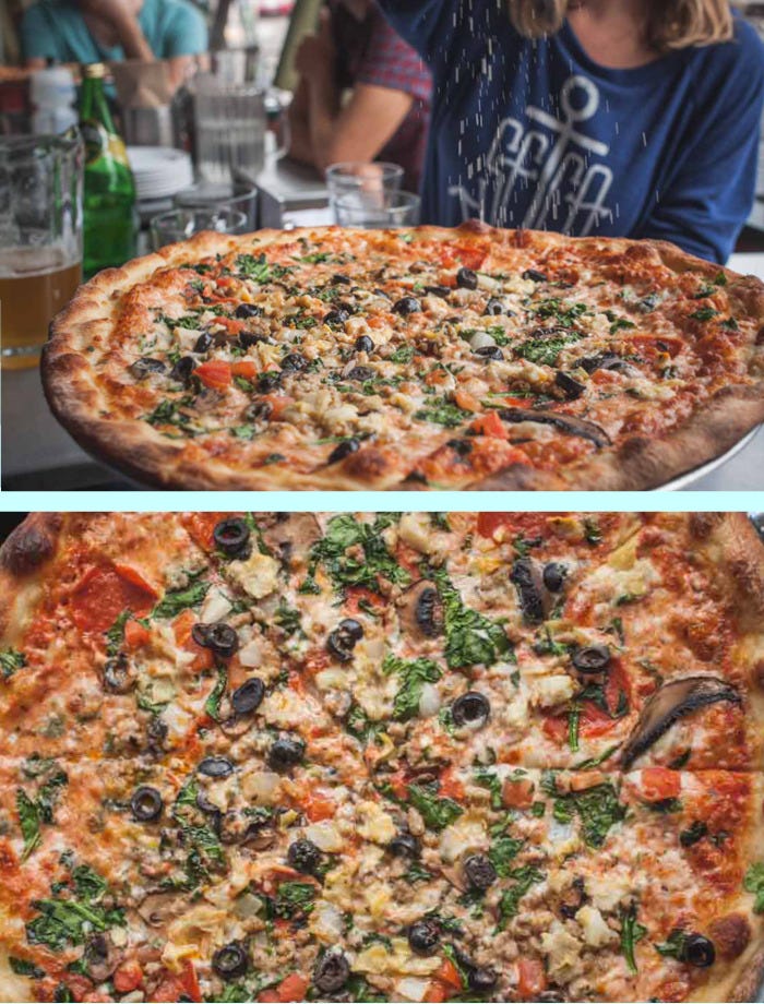 Don’t miss: Any of the pies featuring its excellent tomato sauce. I loved the Fat Boy, topped with bacon, sausage, and pickled peppers.