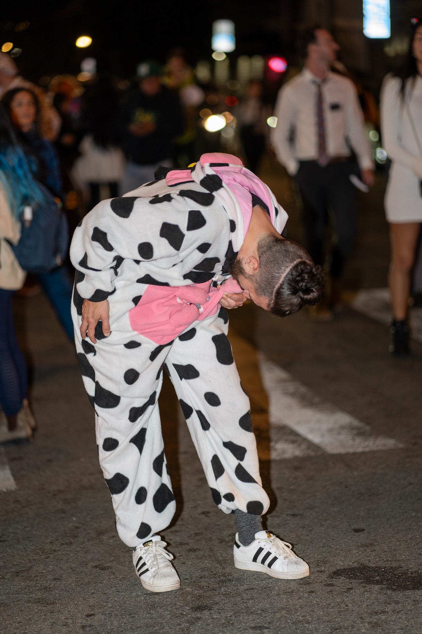 A man in a cow suit bent over with something in his mouth. It looked like maybe one of those scenes from Folsom Street Fair that you don’t want to see, but you do, so you look. When I realized that he had an utter in his mouth, not a part of his anatomy, I asked what was in it. “Espresso martini,” he replied matter-of-factly.
