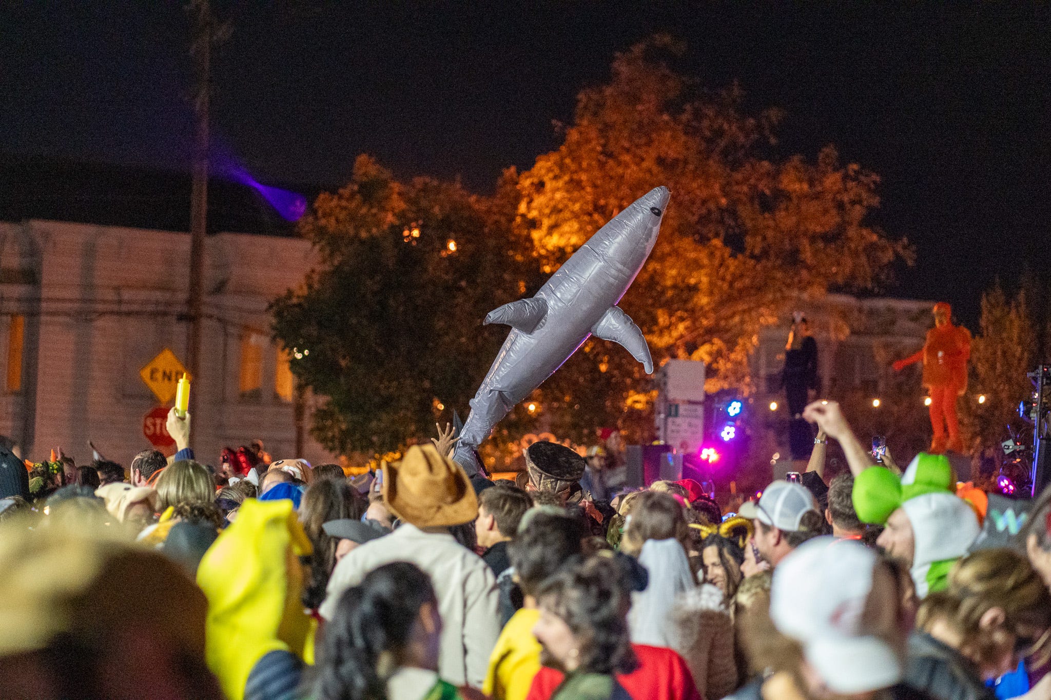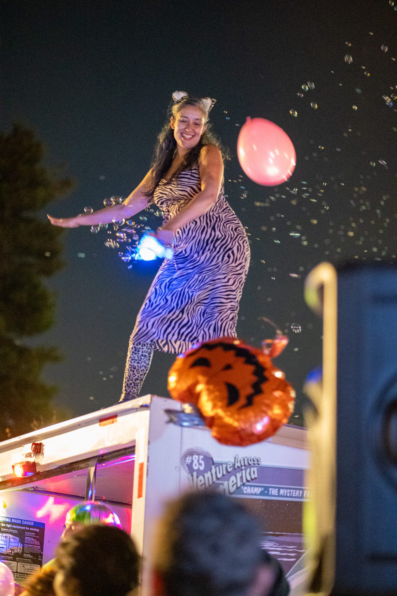 Live music and dancing happened on box truck roofs at every other turn. Blow-up beach balls, disco balloons, and a shark floatie stayed buoyant above the crowds. We moved in staggering unison with the traffic lights and the beat of Lil John’s Get Low.