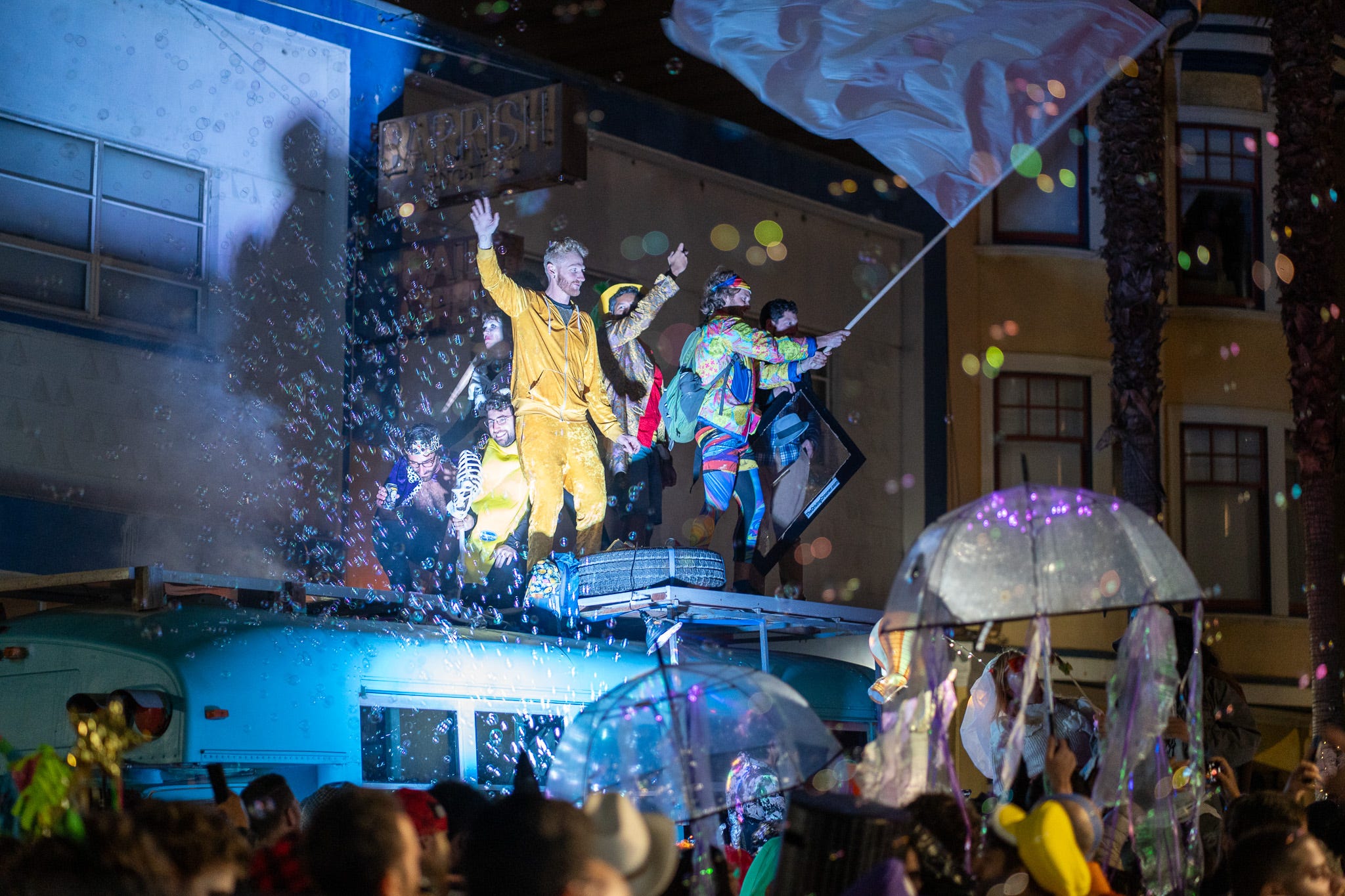From roller-skate-induced dancing to bubble-covered streets and roaming U-Haul bands, DanceOWeen managed to turn the Mission into an unhinged carnival where every participant seemed like both performer and audience. Will I come back? Who knows, but what a fun night.