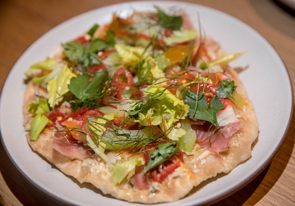Ehler’s fry bread is back, recalling native American fry bread in ethos and body, here with Farr and Fowler’s unique toppings and contrast of smoked speck, caper mayo, celery, fennel and Fresno chilies.