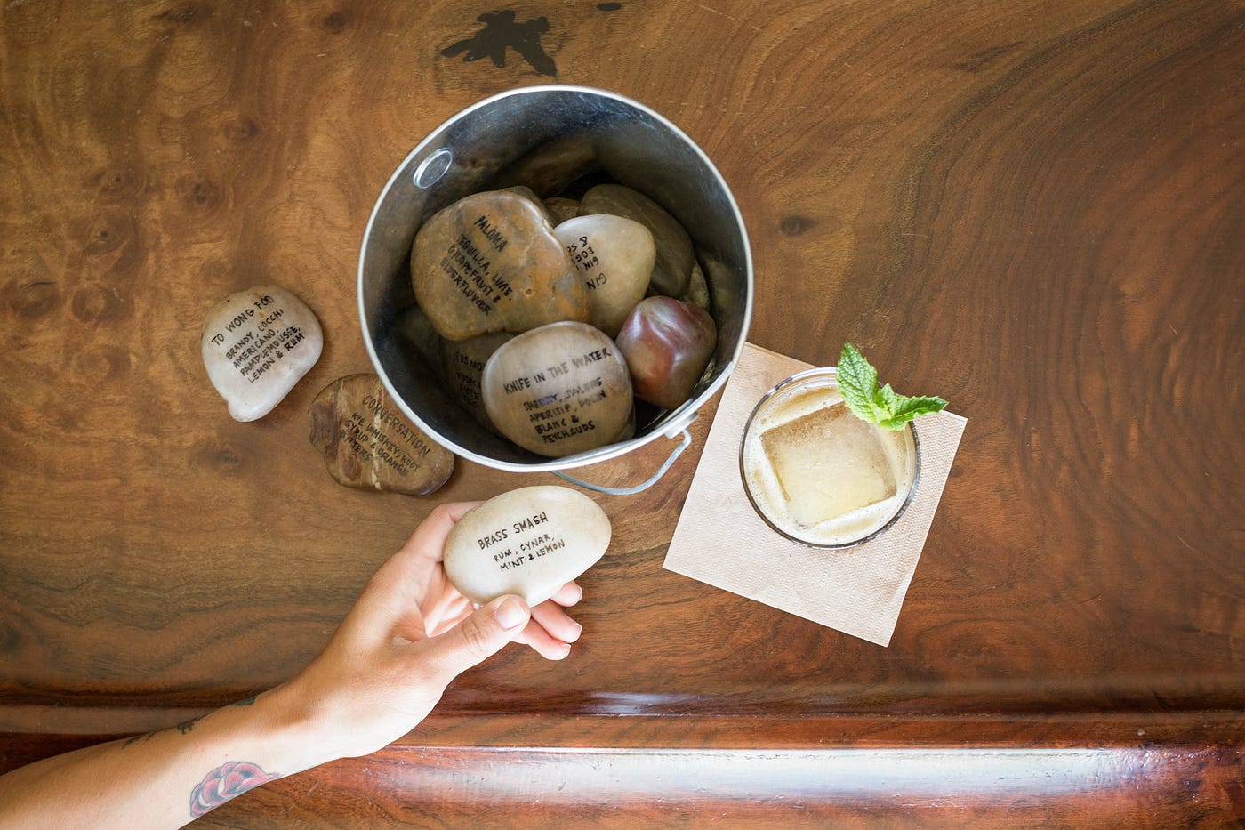 Brass Tacks’ current menu is nice, but a little too easy to take in at a glance. You know what’s not? A bucket of rocks.