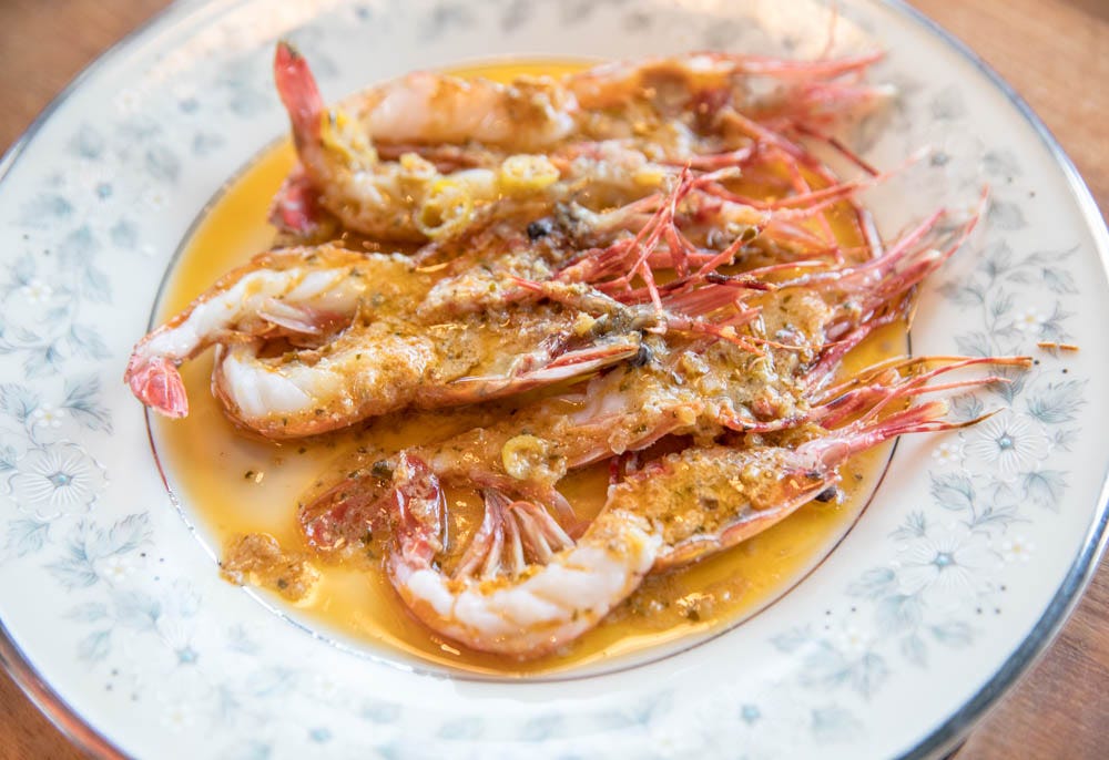 As we recently returned to Routier with my lifelong best friend, Anita, visiting from Manhattan, I tried not to get too excited once I heard local spot prawns were on the menu that day, which chef Carmona wisely chose to let shine on their own in butter and garlic. One of our many great treasures off the California coast (including some of the world’s best sea urchin/uni, abalone and squid), spot prawns have a brief season, sell out quickly and quickly appear and disappear on local menus. They are the lobster of prawns, as some say, but I prefer these juicy, tender little gems over most lobster. We dove into their silky succulence, as we did with another stellar special of lush raw scallop crudo served in its shell. While I was eager to have Anita try Routier overall, the likes of local, fresh spot prawns felt like a home-run taste of NorCal/SF life.