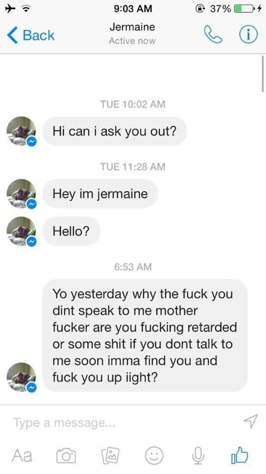 Some of these texts show the bizarre “damned if you do, damned if you don’t” phenomena of online dating where if you tell someone you’re not interested they get mad, and if you say nothing … they still get mad.