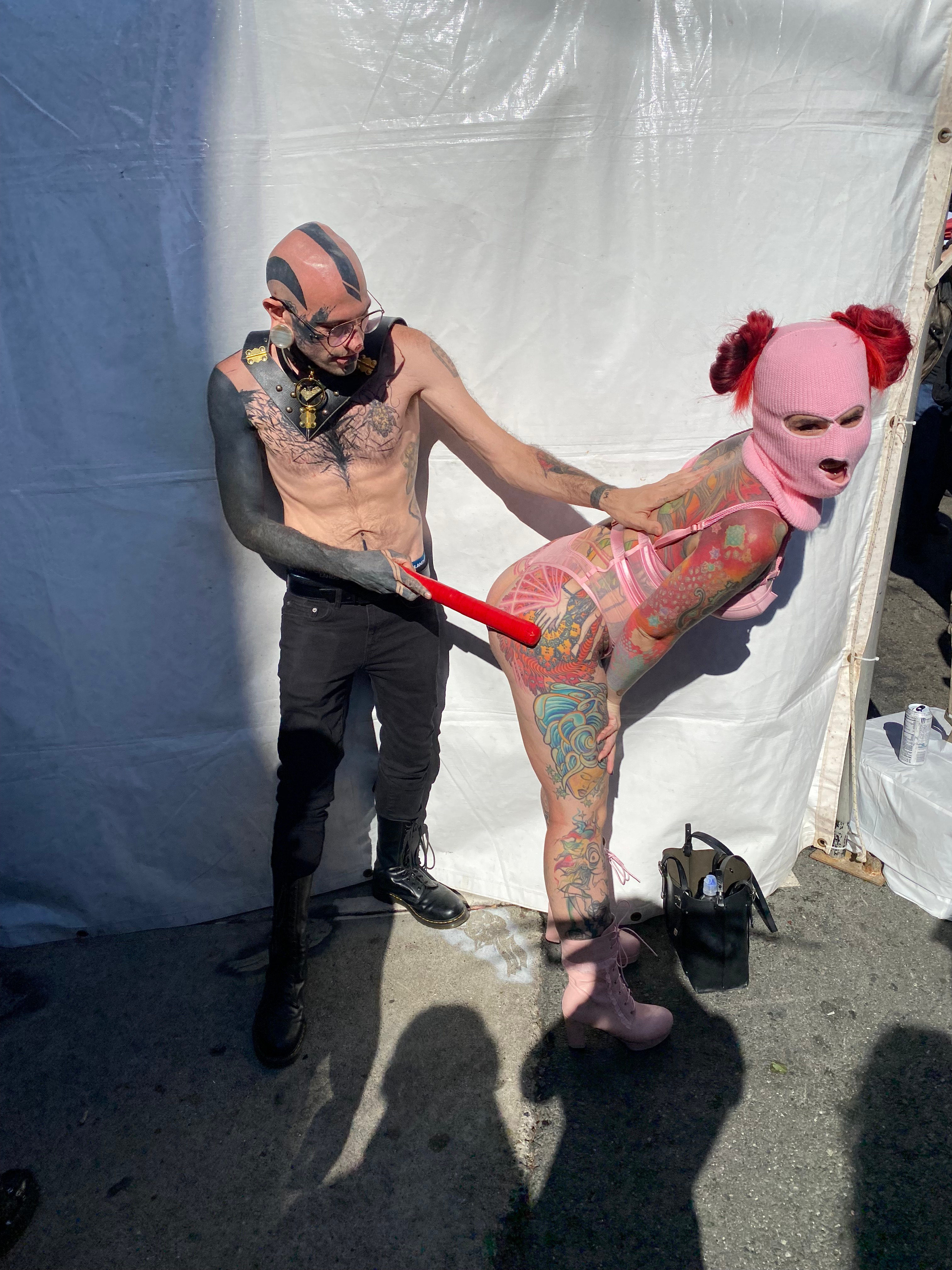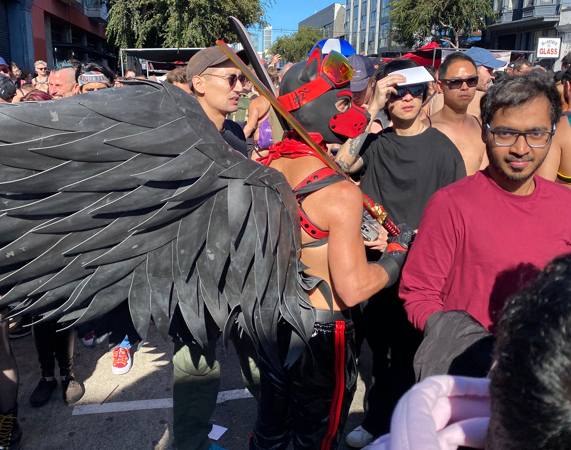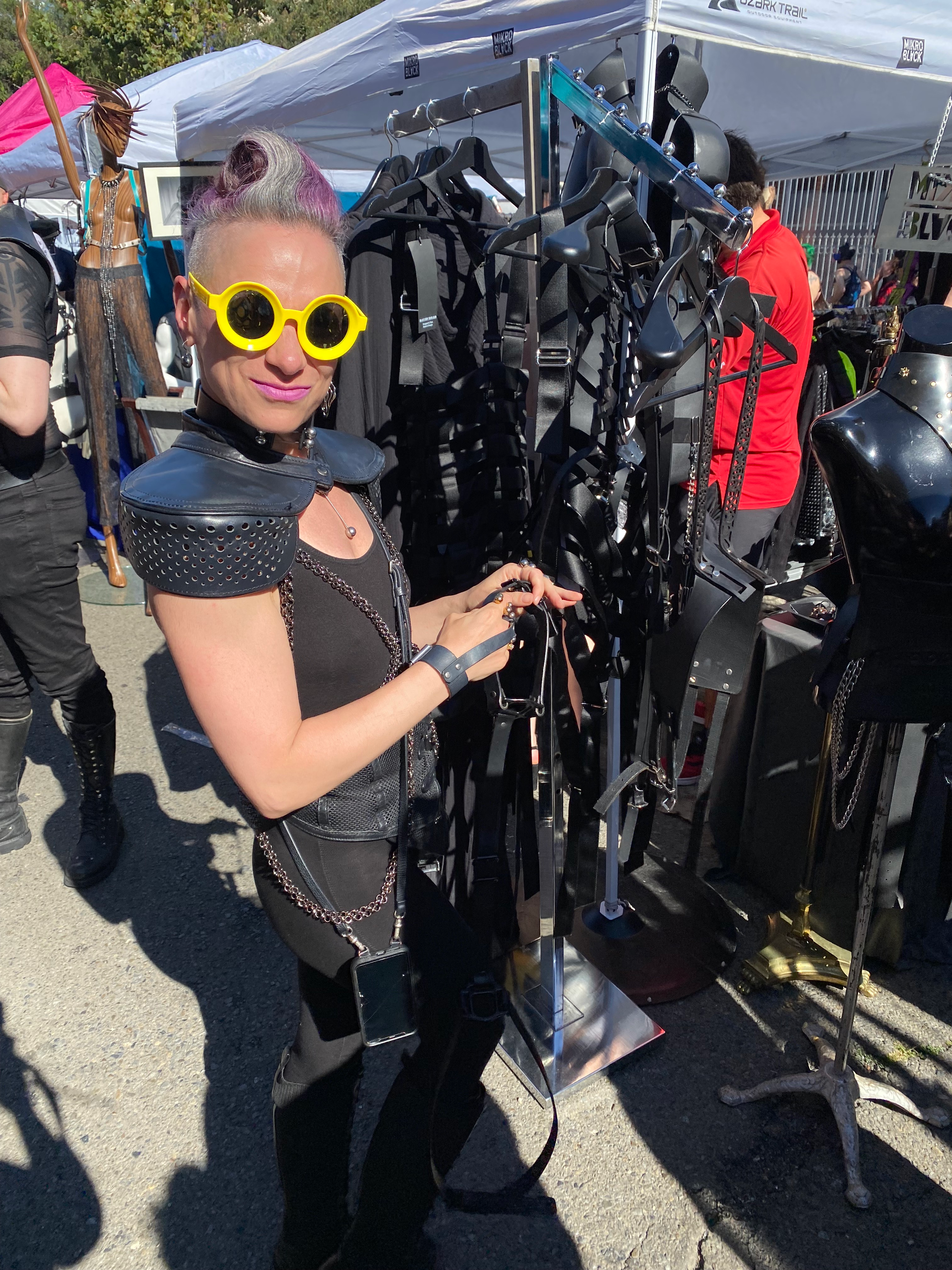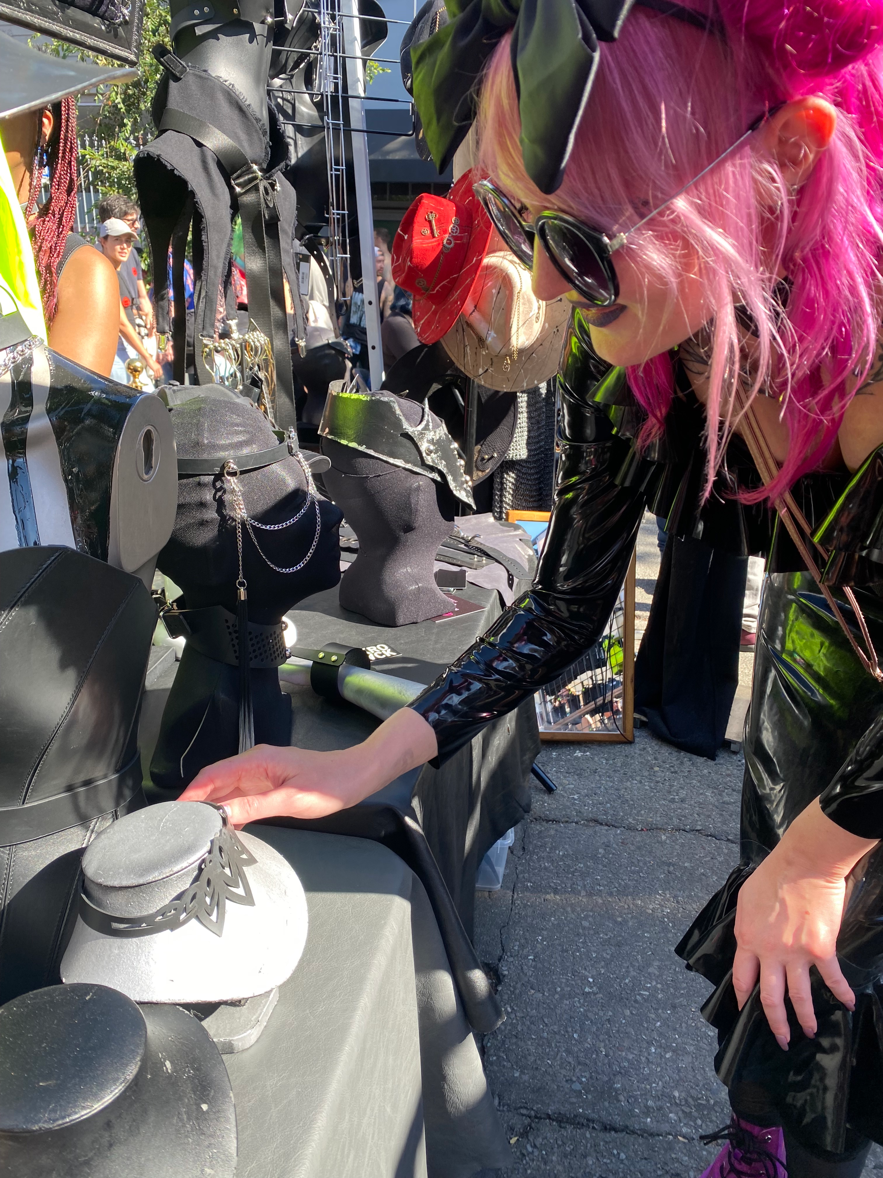 “I’m just here for the shopping,” said Red Bettie, a local performer perusing the gear and goods at the many stalls selling BDSM toys, kink-related artwork, and — most especially — custom-made sexy apparel. And that’s when I realized the best part of Folsom isn’t the action — it’s the fits. Come for the kink, but stay for the looks.