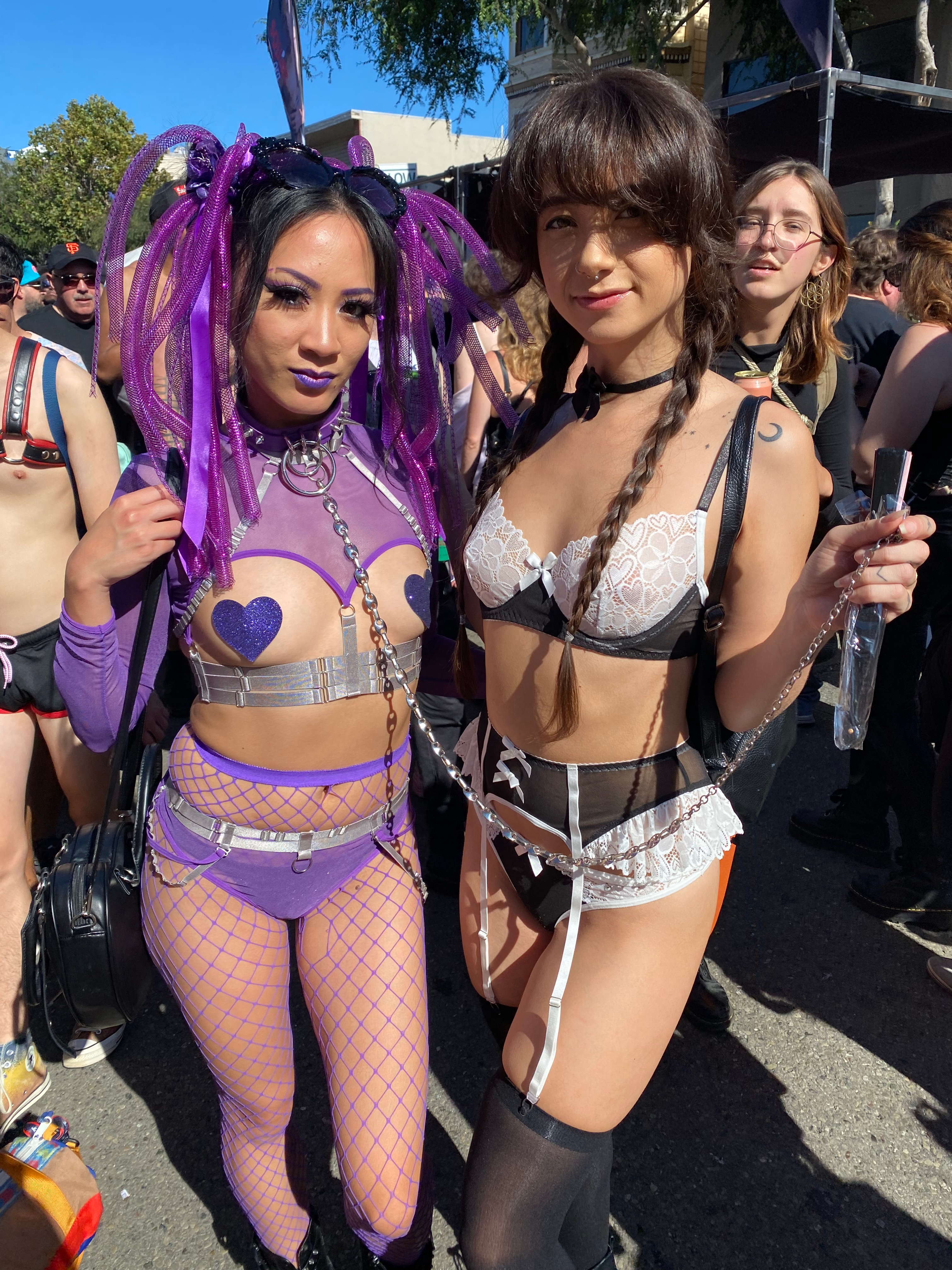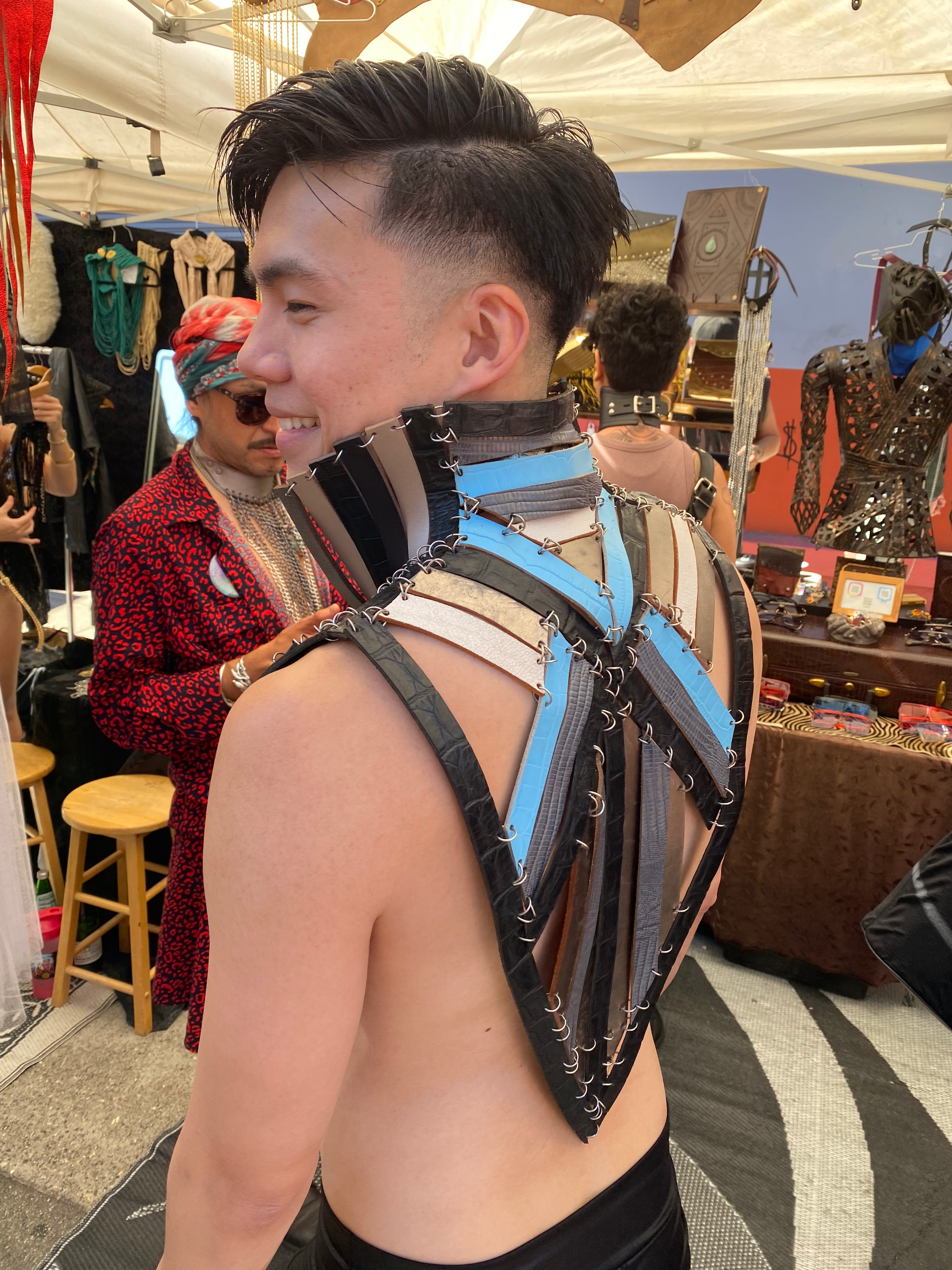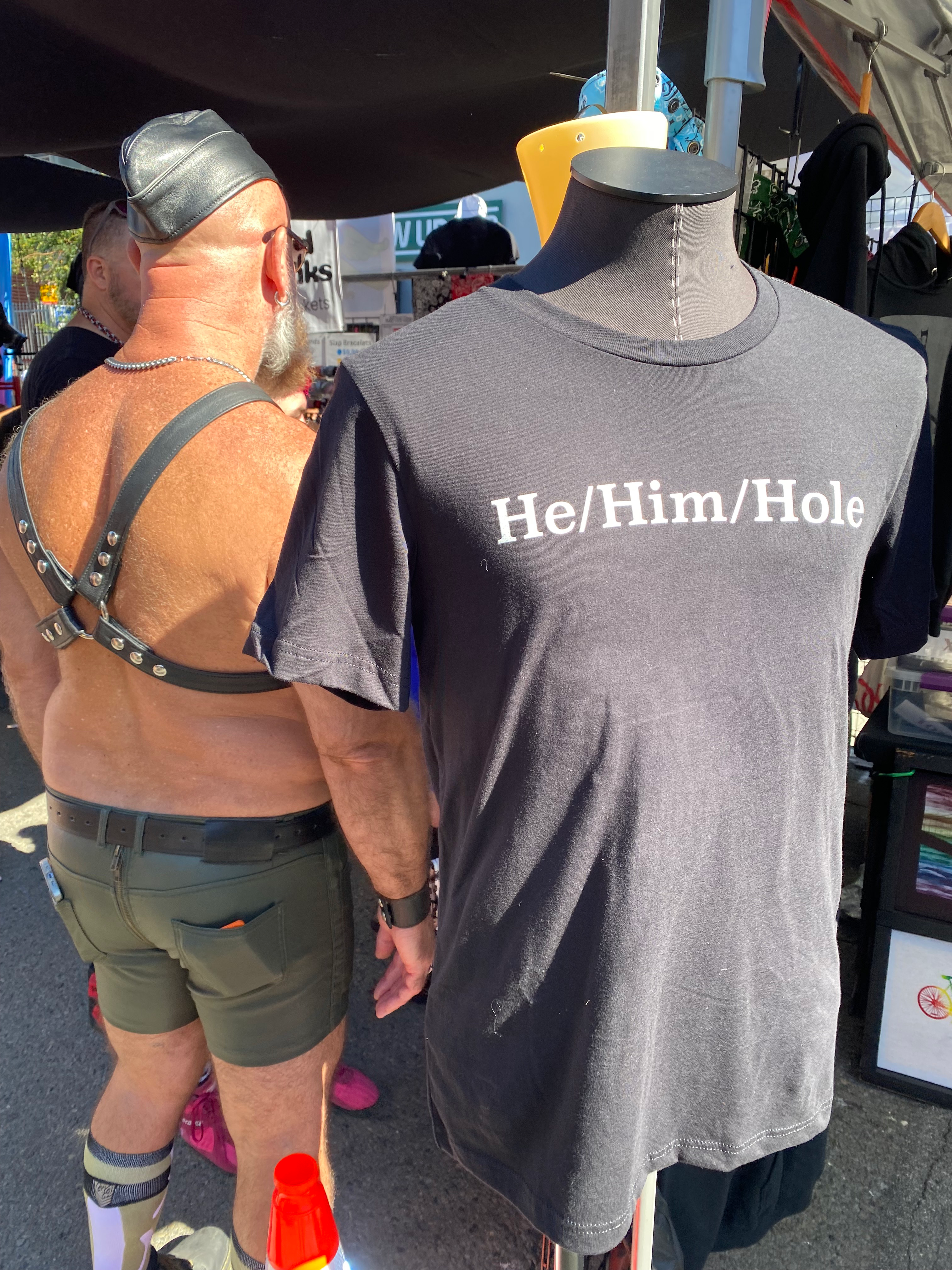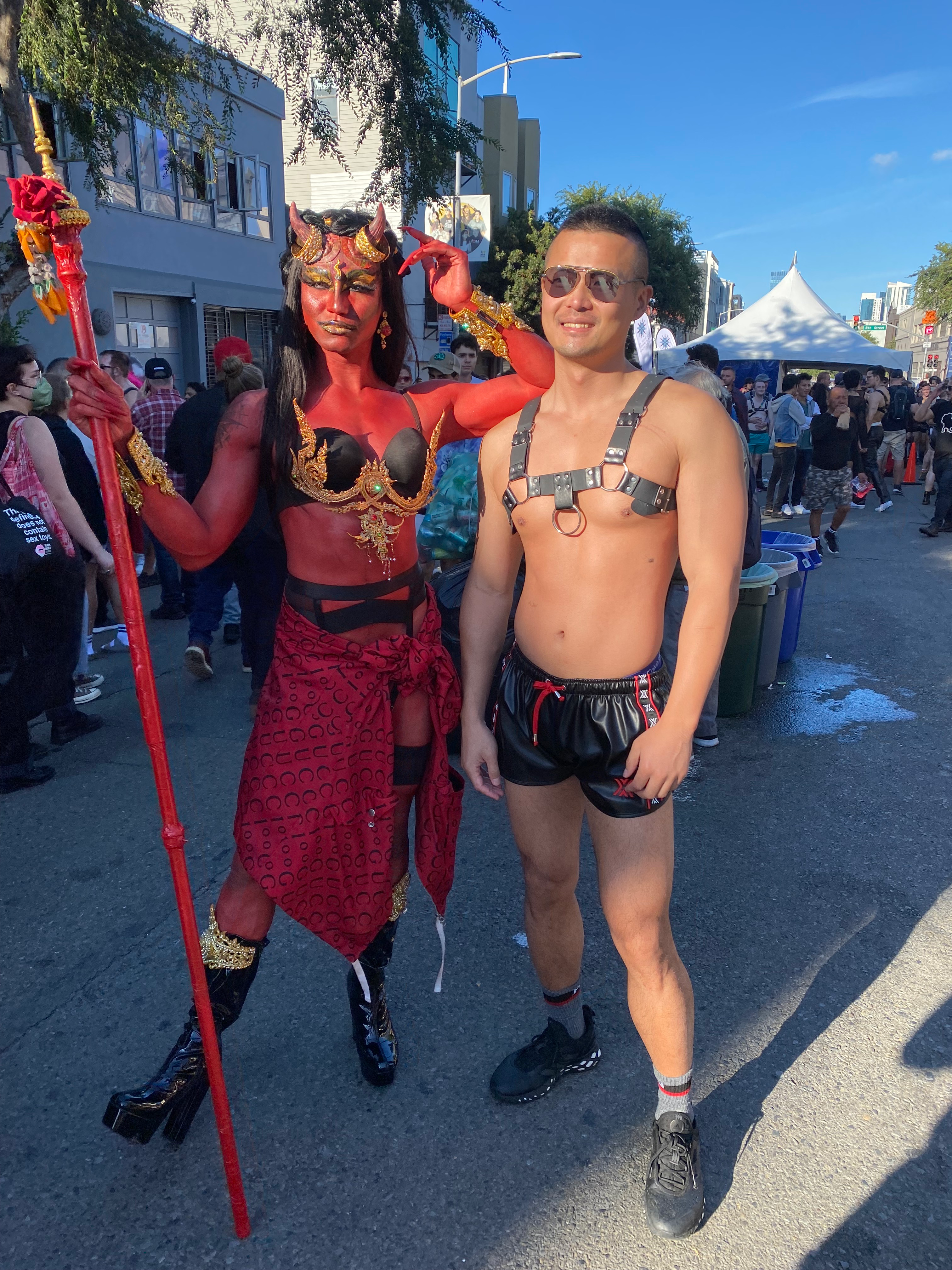 “I’m just here for the shopping,” said Red Bettie, a local performer perusing the gear and goods at the many stalls selling BDSM toys, kink-related artwork, and — most especially — custom-made sexy apparel. And that’s when I realized the best part of Folsom isn’t the action — it’s the fits. Come for the kink, but stay for the looks.