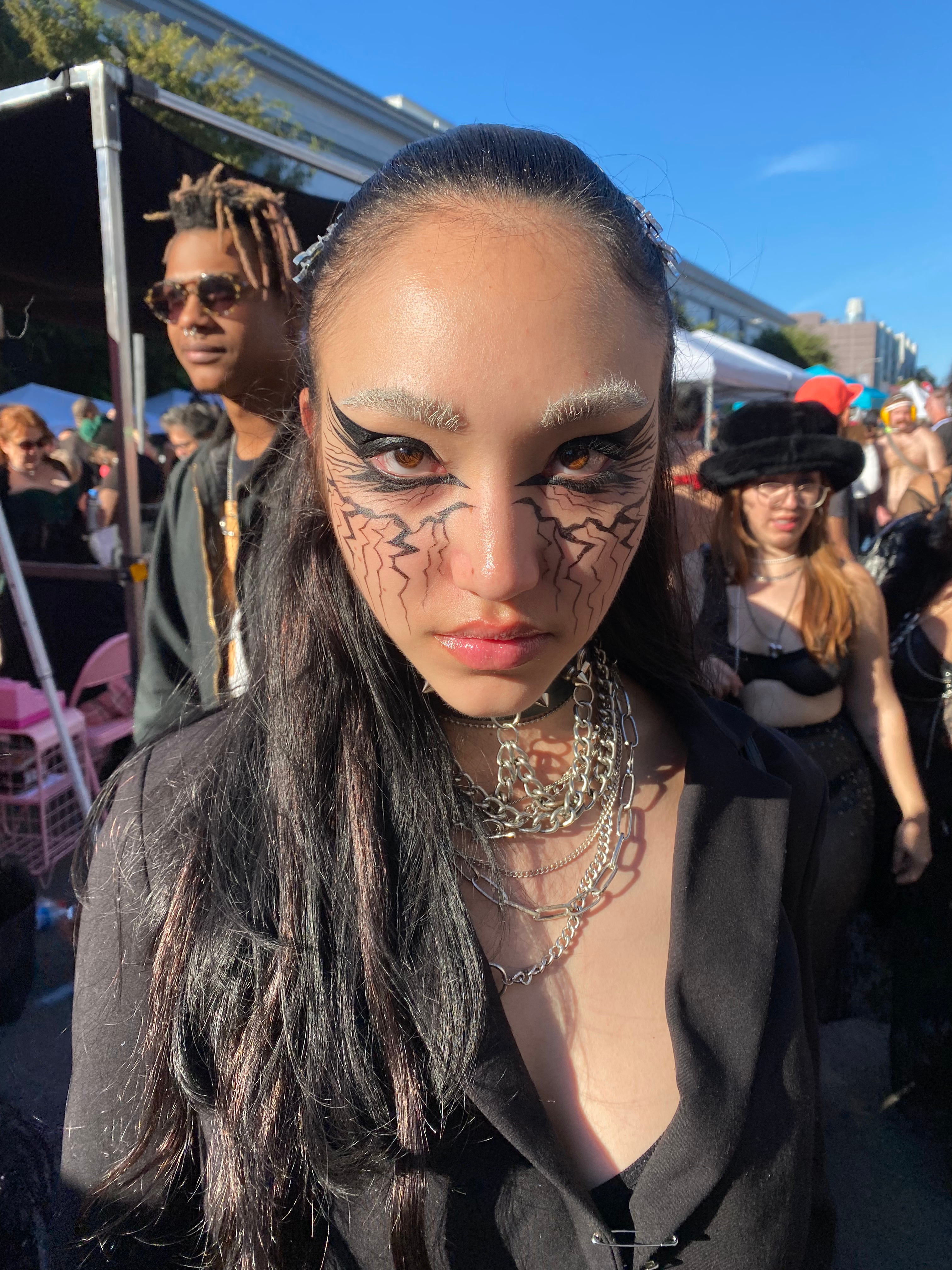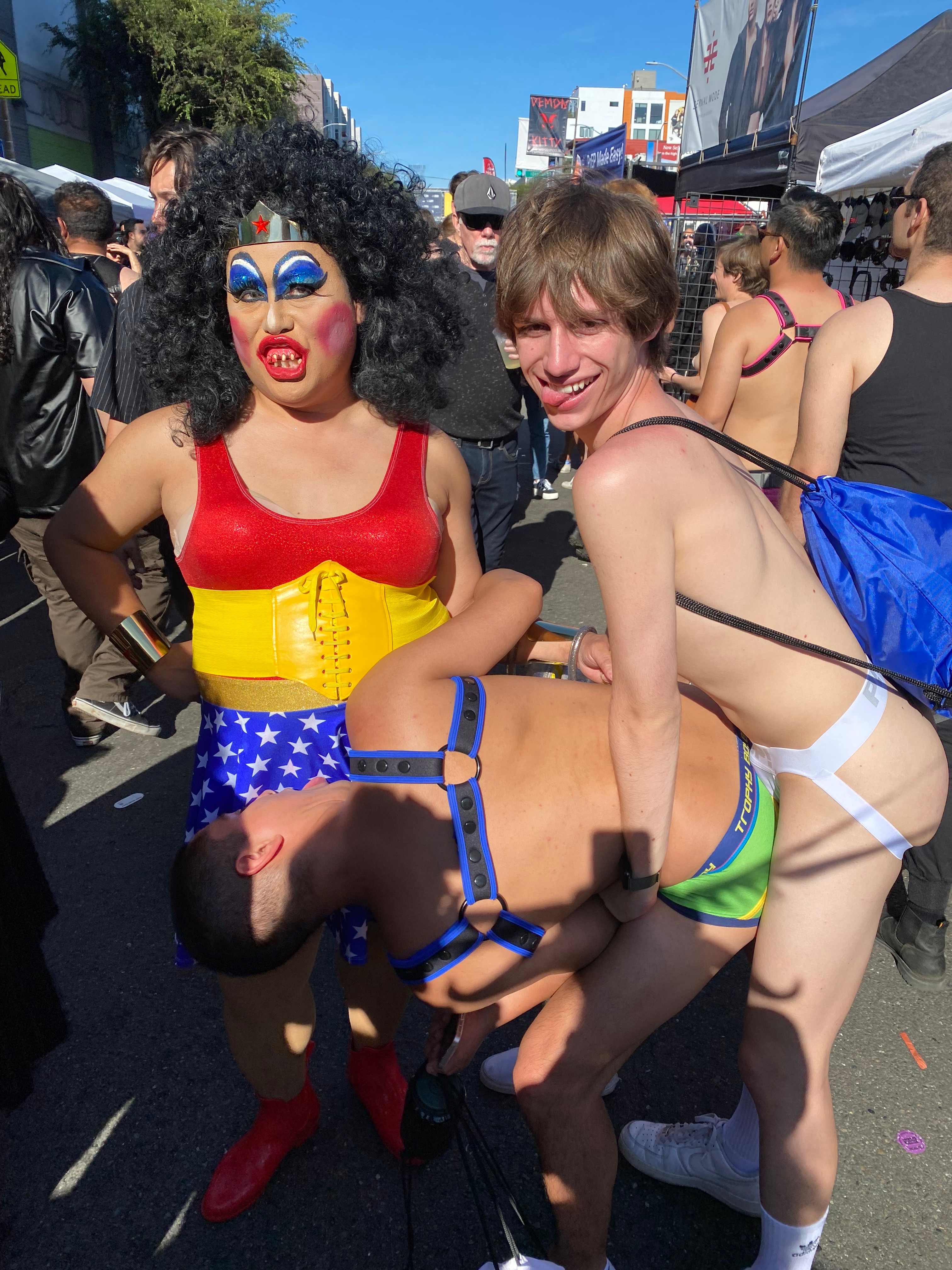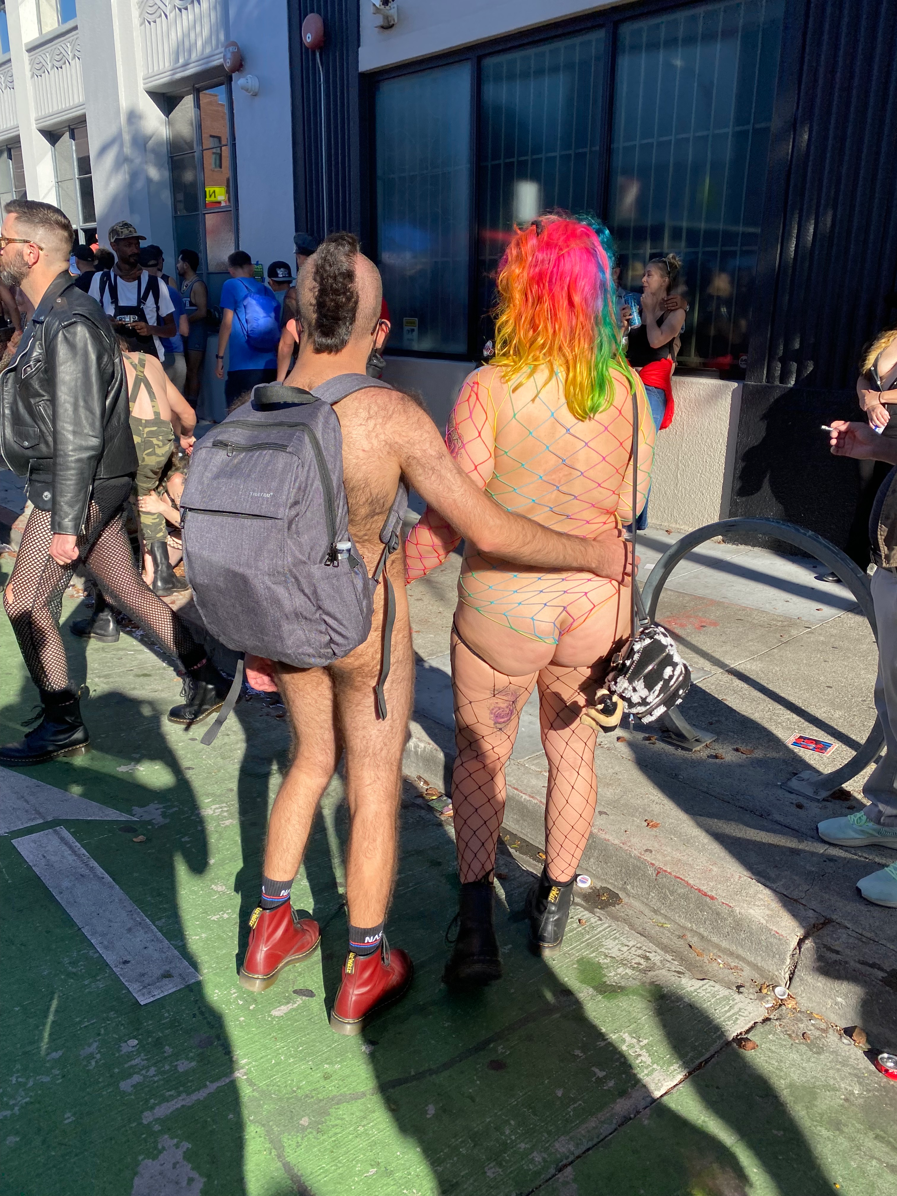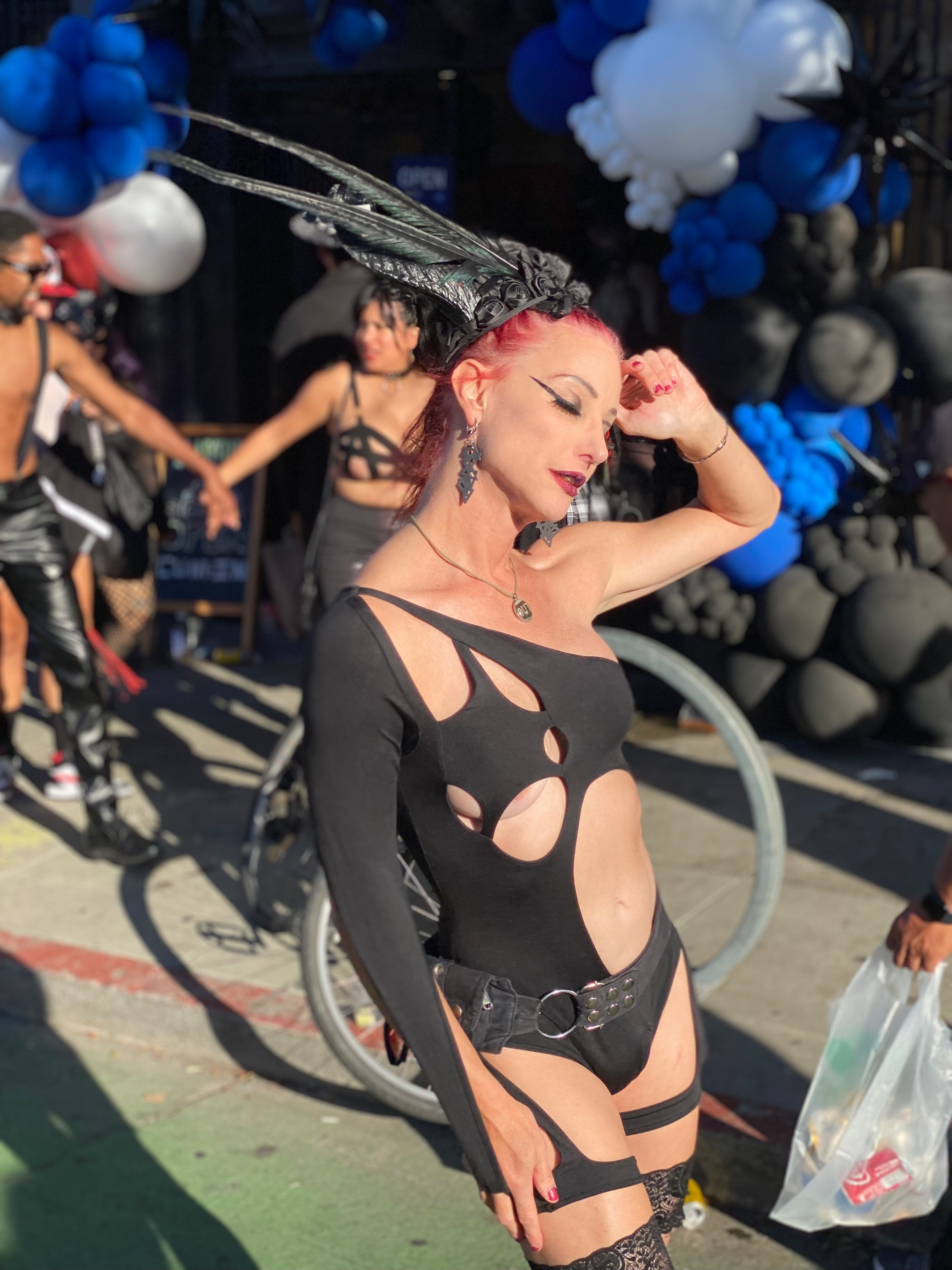 “I’m just here for the shopping,” said Red Bettie, a local performer perusing the gear and goods at the many stalls selling BDSM toys, kink-related artwork, and — most especially — custom-made sexy apparel. And that’s when I realized the best part of Folsom isn’t the action — it’s the fits. Come for the kink, but stay for the looks.