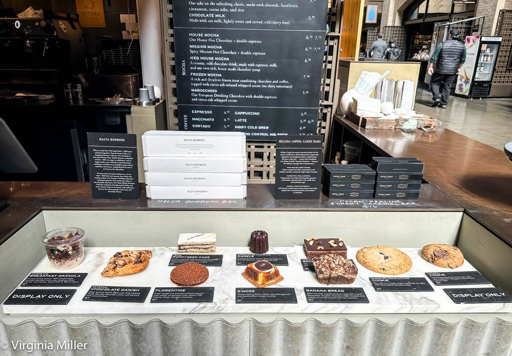 There are two great chocolatiers in the Ferry Building. I haven’t been back to Recchuiti in a while, but was a fan from day one of their elegant chocolate truffles. Dandelion Chocolate is a superb bean-to-bar producer with their chocolate factories in SF’s Mission District, gorgeous pastries, truffles, drinking chocolates and bars of single origin chocolate they source thoughtfully around the world.