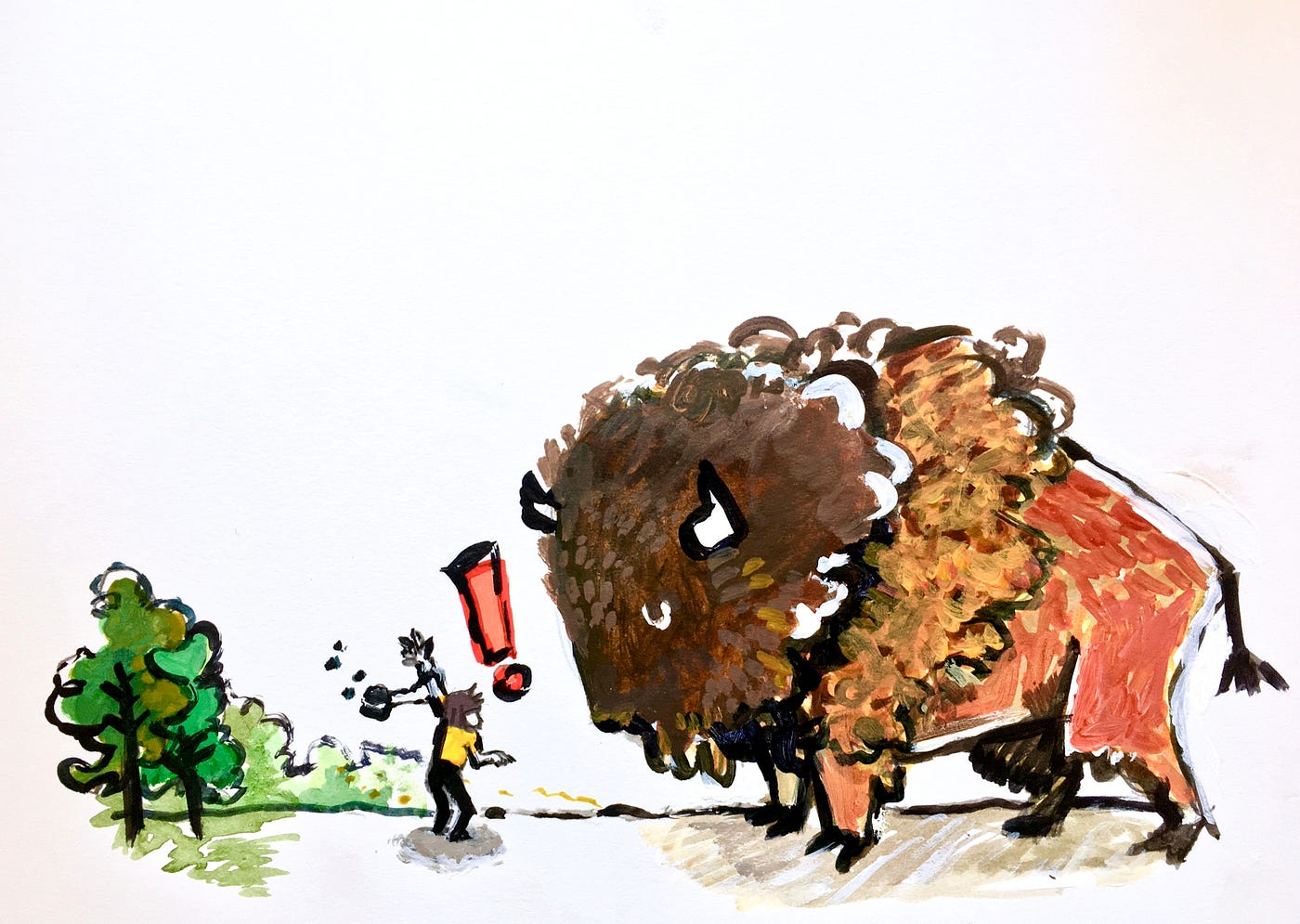 Majestic and hairy, the bison (likely) have poor hearing due to the dreadlocks blocking their ears. So go ahead — tell them all about the 32-year-old man who left a used condom in the decorative teacup your grandmother gave you after you slept together. The bison are great listeners.