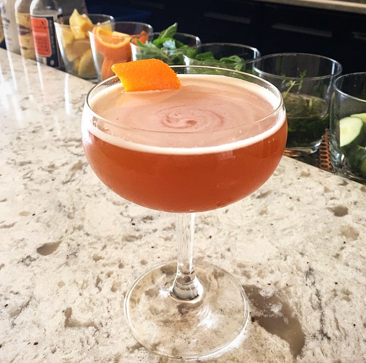 Bryan Hamann of San Francisco’s award-winning prodigy The Progress was really feeling the summer vibes when he created this citrusy pick-me-up, which will make you want to be out tanning on a boat. Or more like sailing with your windbreaker on.