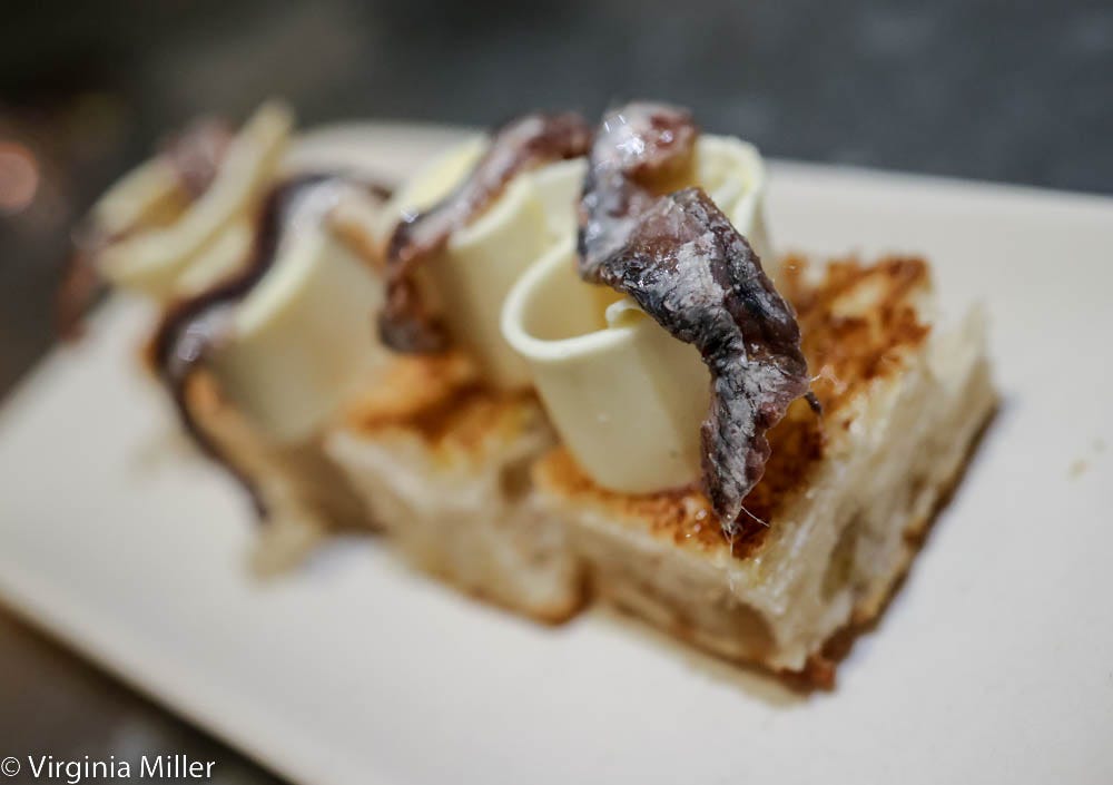 Partnered with the fish, we tried the killer pane a pala (the $7 breads have the option to add warm Double 8 ricotta cheese), which chef de cuisine John Arcudi and the aformentioned baker, Kalanty, honed in. This Roman-style pane/bread is in the shape of a pala or paddle, using a high-hydration, long-rising dough. It turns out both crispy and airy, deliciously sopping up all the sauces.
