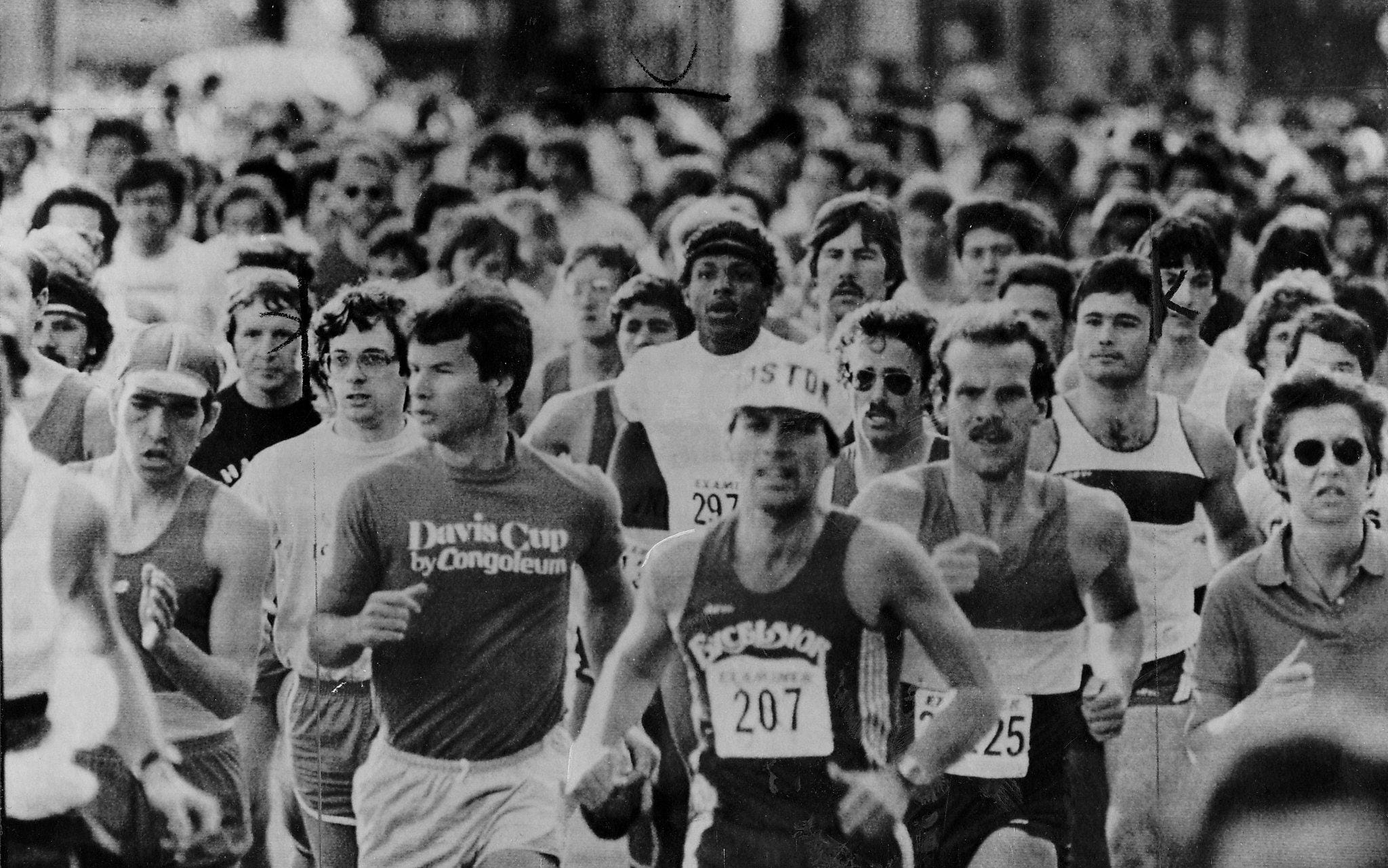 Officially open to men only until 1971, there was some excitement when a top competitor’s girlfriend, Barbara Burke, ran the race in 1941, outwitting the registrar by entering as Bobby. But mainly, for its first half century, the race was a quiet, little event. In 1963, a mere 25 runners competed. In the next two decades, it benefited from a new name, the San Francisco Examiner’s publicity, and the growing mass obsession with jogging. A whopping 110,000 ran the 1986 race, setting a Guinness Book-certified world record.