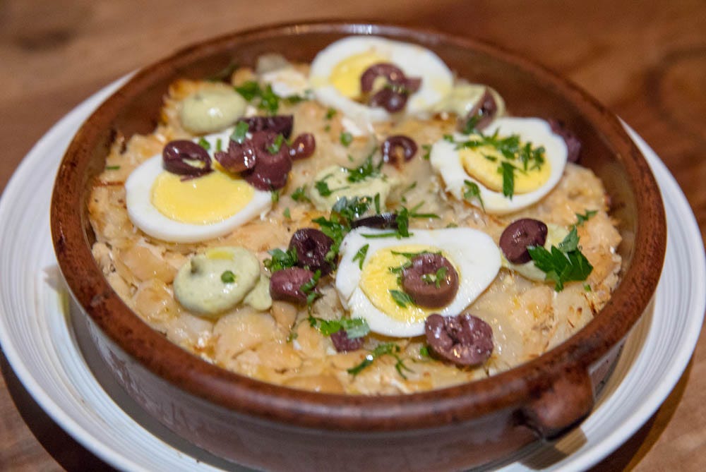 Salt cod shines again in a hearty, classic bacalhau à gomes de sá, or baked salt cod casserole, rich with potatoes, caramelized onions, parsley aioli, olives, and egg. With my first salty-savory bite, I was transported back to a family winery in Portugal’s Douro region where the father cooked for us as we ate and dined together in their 1800s wine cellar. Telmo’s casserole recalled the heartwarming care, laughter and comfort I remember vividly from this family meal. It’s a dish to share with those you love.