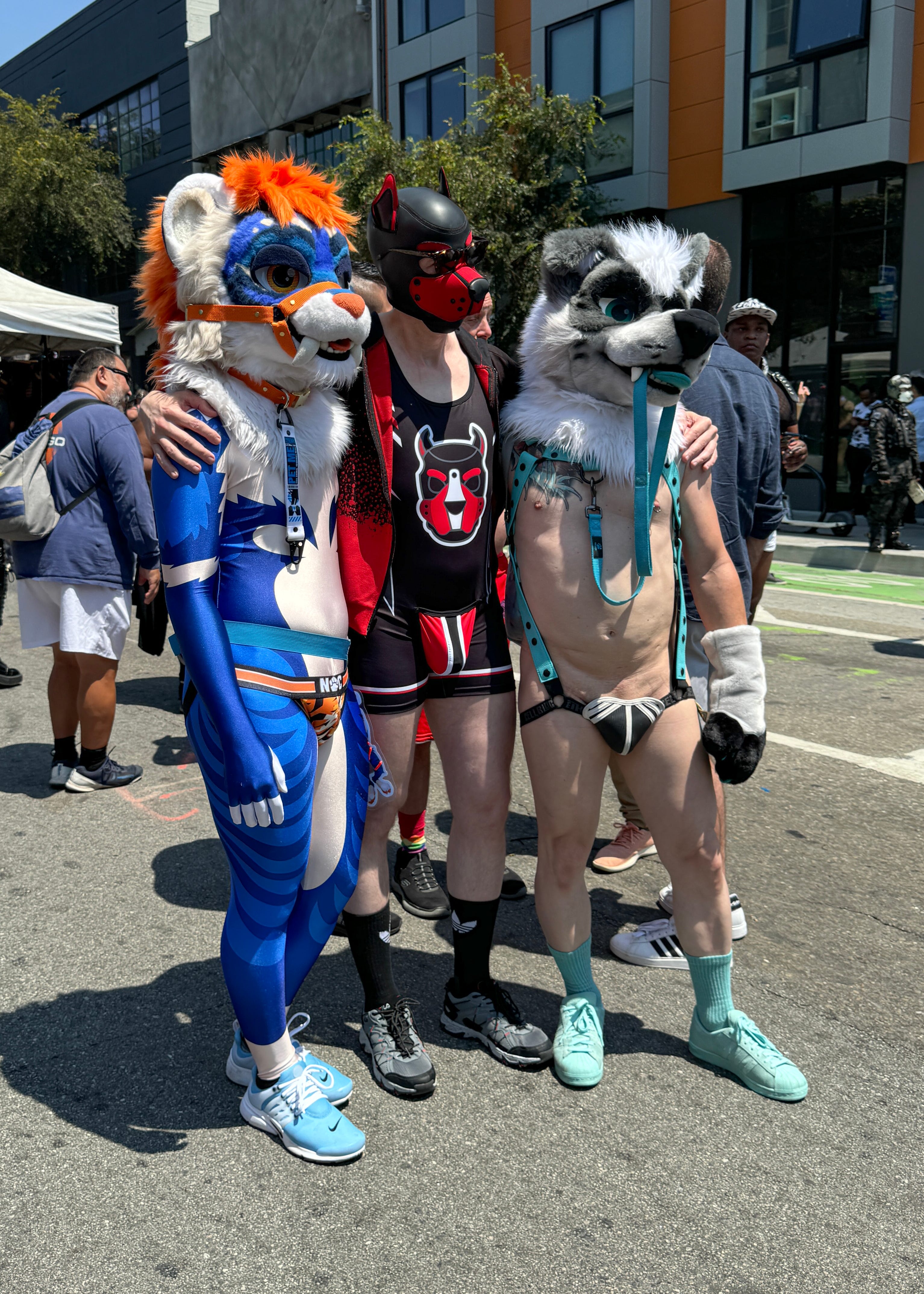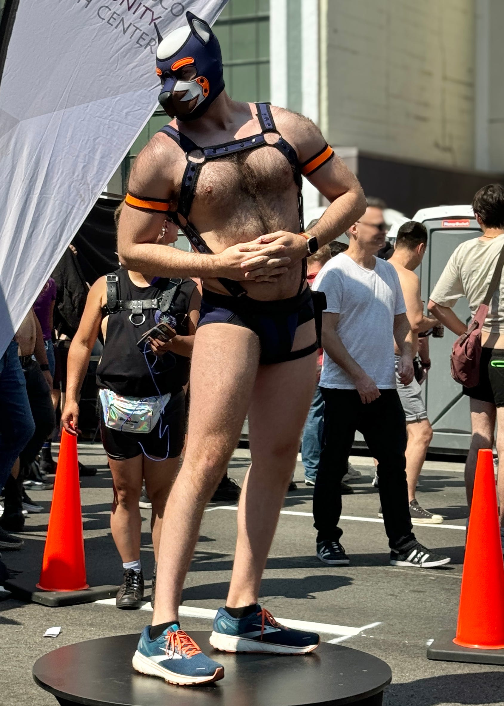 I personally can only stand in the sun getting nudged by big groups for a little time each year. But I sent intrepid photographers to get the photos below and in our NSFW set. Christopher J. Beale described his experience this year, and Aaron Levy-Wolins gave a good take on pup play last year.