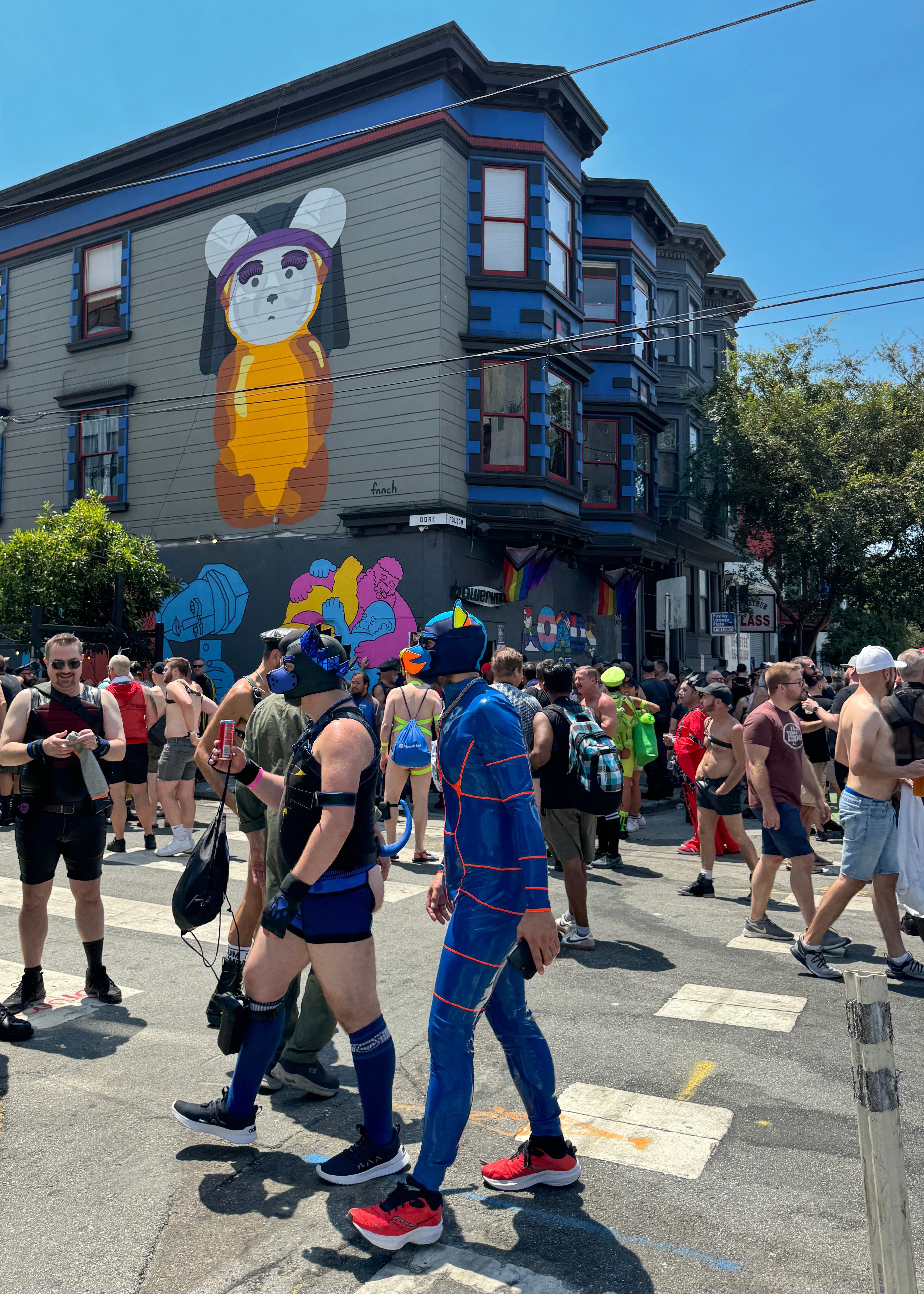 Held annually on the last Sunday of July, the parties transform several blocks of Folsom Street into a lively festival of self-expression and community. We saw everything from live music, performances, fetish demonstrations, and vendor booths.