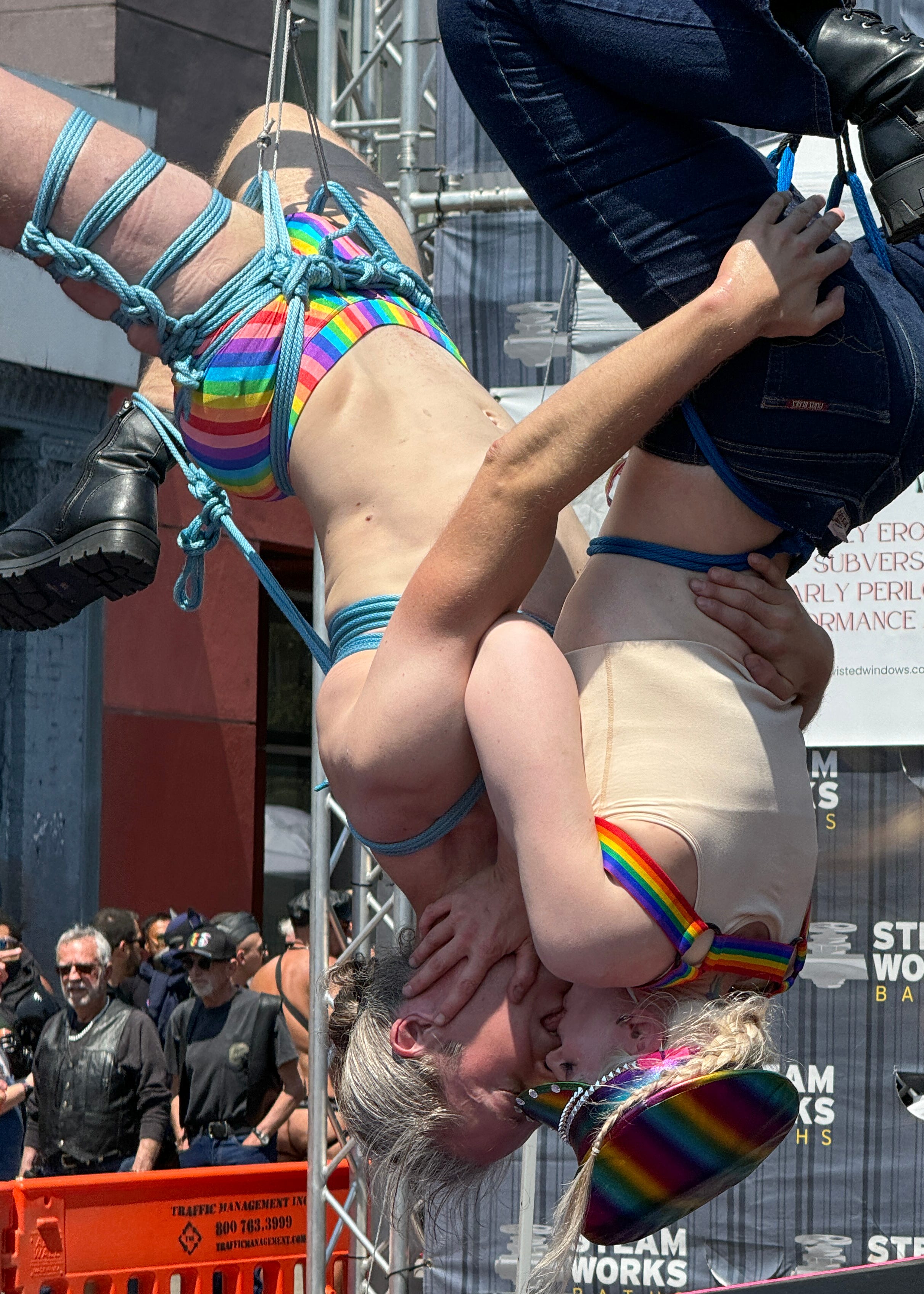 Dore Alley gave us about what you’d expect this year: Kissing, dance parties, rope demonstrations and yep — lots of nipples, butt cheeks, and dick. Here’s our NSFW album, and what’s below is only somewhat safe for work.