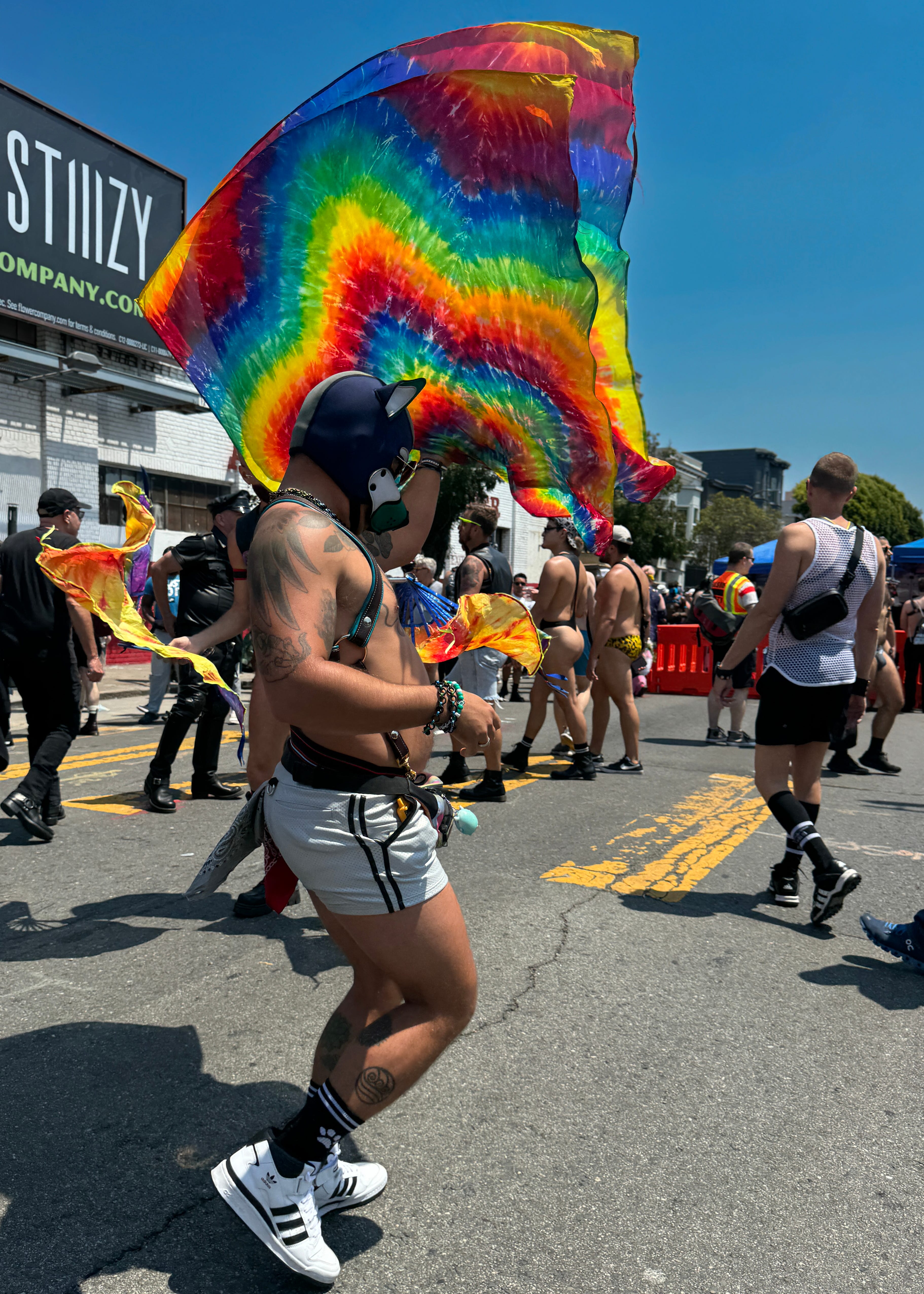 Whether you’re into bears, pups, or simply curious, Dore Alley provides an inclusive space for all expressions and identities. And we definitely saw a kaleidoscope of options Sunday, from furries to fishnets, strap-ons to angel wings; There was something for everyone. Friends reconnected, strangers became friends, and the celebration of diversity was evident in every corner.