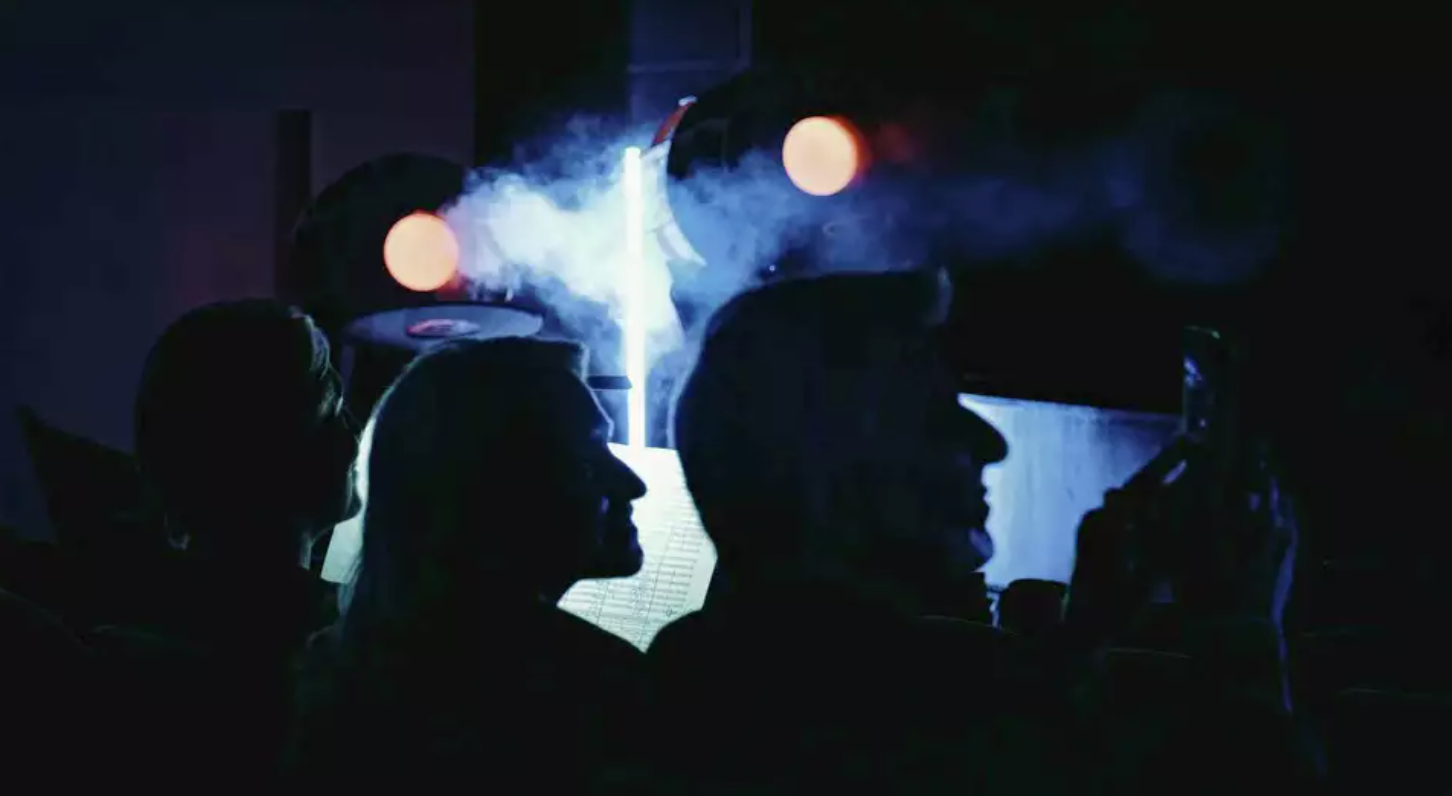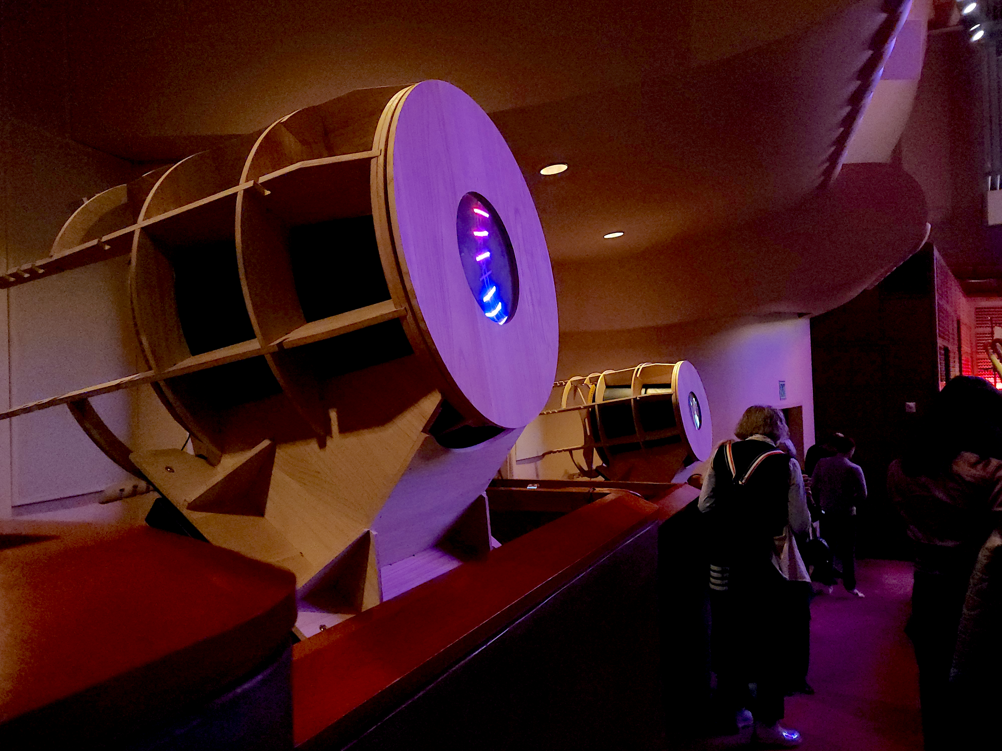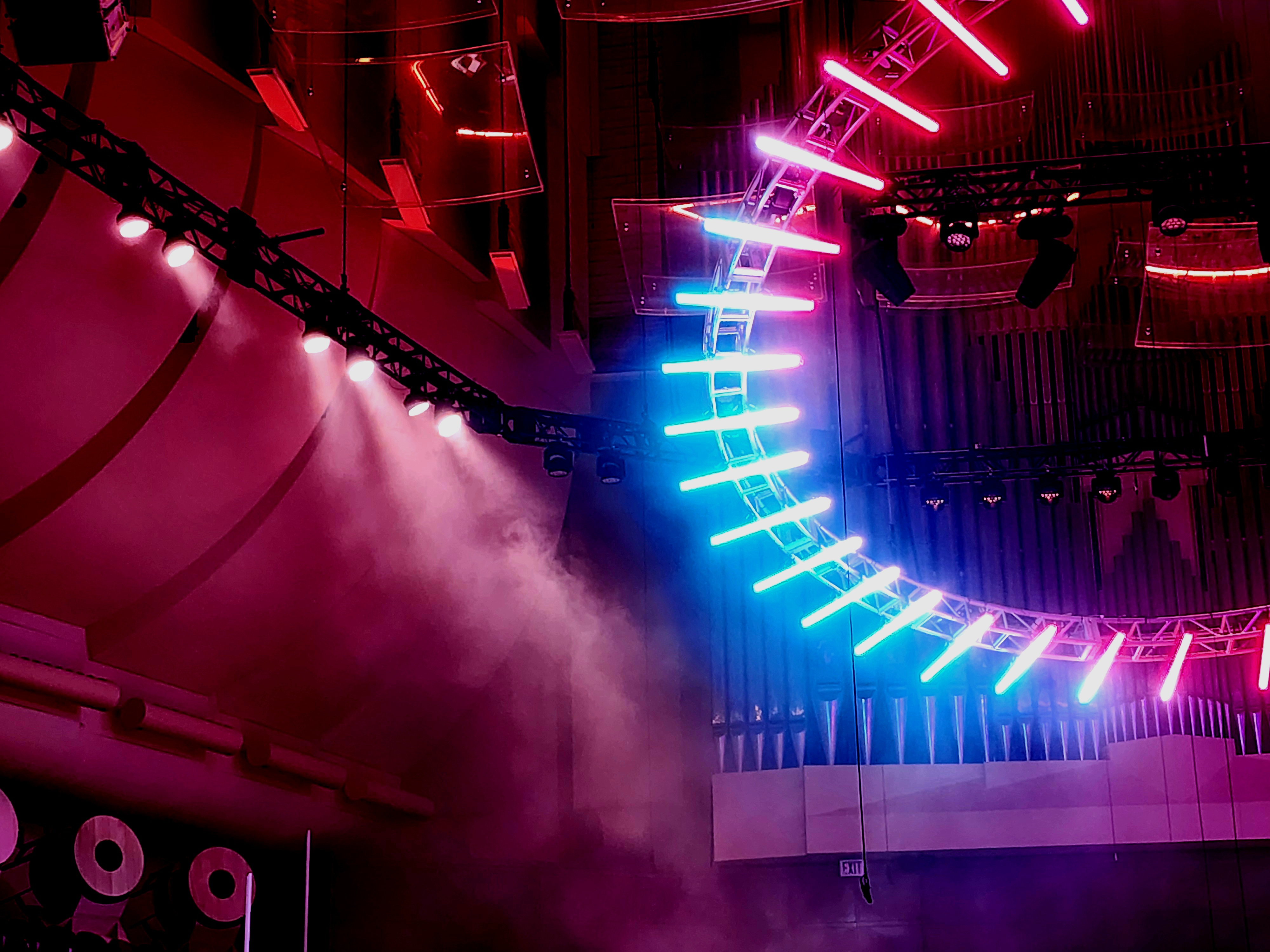 Smell was what everyone talked about, but my eyes transfixed on a circular apparatus of LED rods that hung above the symphony. Designed by Luke Kritzeck, this metal oval pulsated waves of color in step with the symphony’s performance, and I only stopped staring at it when I felt equally enthralled by wooden drums placed throughout Davies Symphony Hall. Like a kid at Disneyland, I nudged my boyfriend when the drums glowed, changed color, mechanically lowered their front covers, and then shot out rings of smoke like a 1950s film starlet dragging on a cigarette.