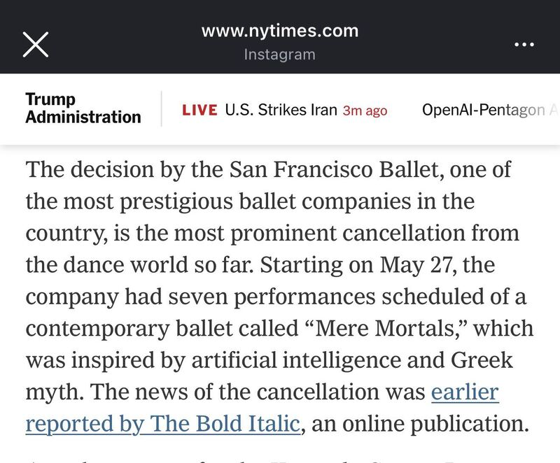The bots arrived on cue, lamenting that the ballet had made a decision "based in politics." To which I'd say: have you ever actually watched a ballet? Art has always been political.