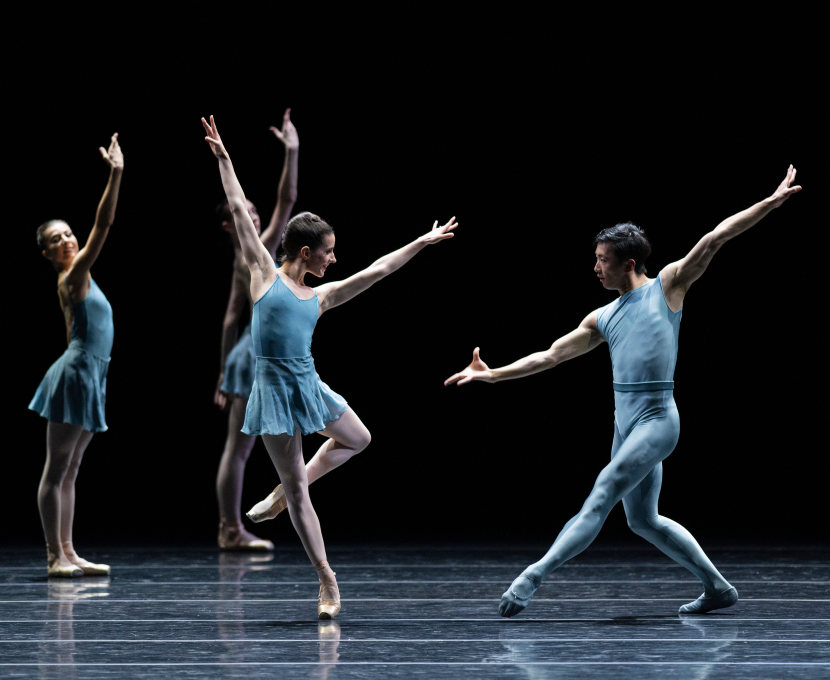 I tuned back in properly for The Barre Project, the evening's second piece that was born on Zoom during COVID lockdown. (My favorite of these was bathtub Swan Lake.) A projection overhead showed four squares, each with a barre, and the hands of ballerinas waved into frame. Then the video became reality. Dancers worked through exercises like it was morning class, commanding the barre like it owed them money.