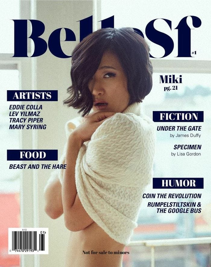 The first issue of Belle Sf debuted last week. But don’t expect to find copies at Barnes and Noble just yet, as the magazine will only be available at locally-run shops, in keeping with the smaller-scale, Bay Area theme.