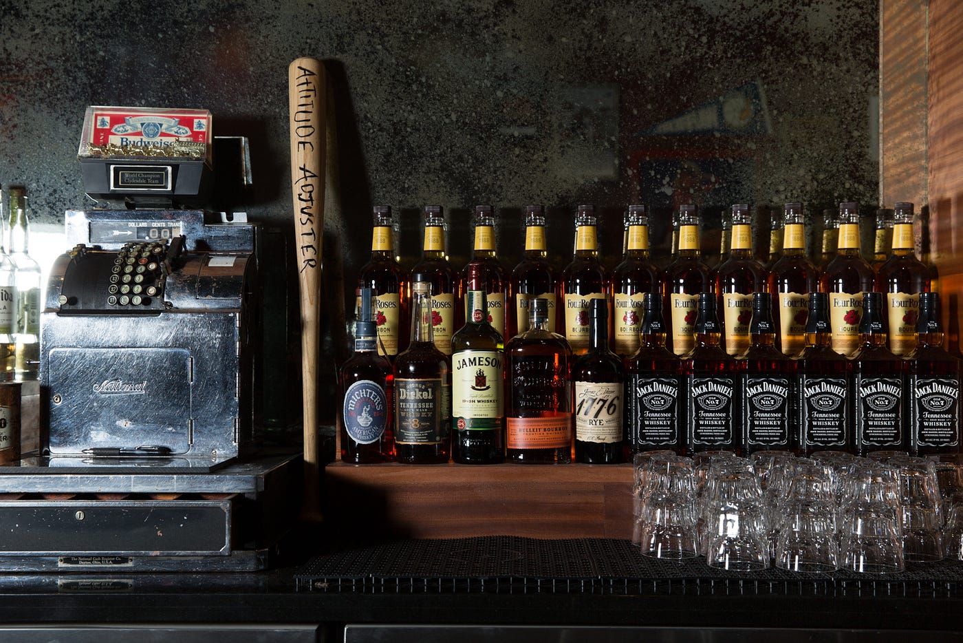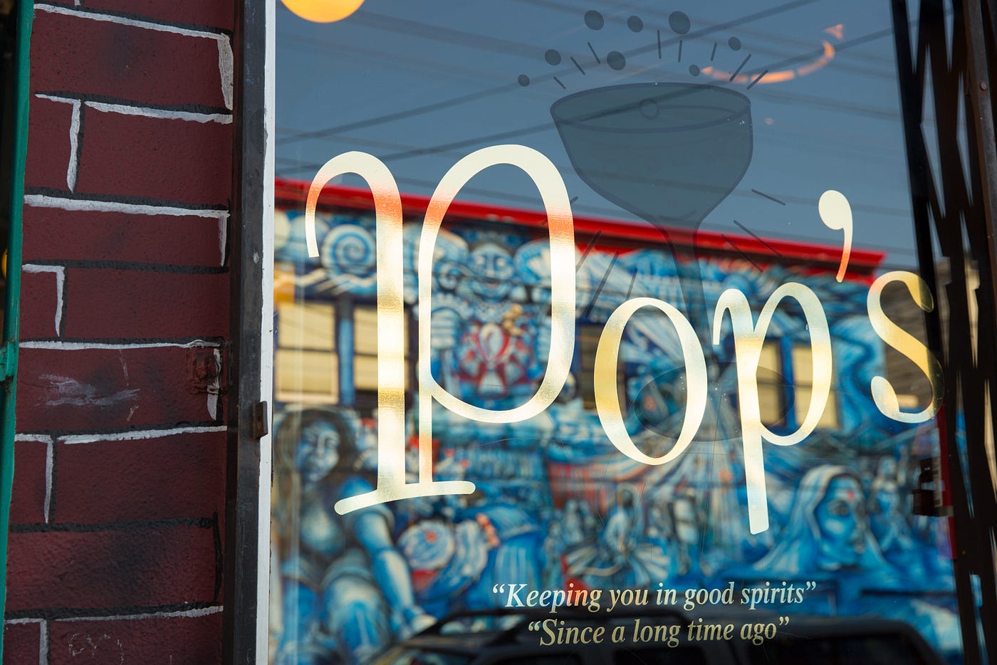 The gold logo and motto in the windows were resurrected from a 1940s original Pop’s matchbook.