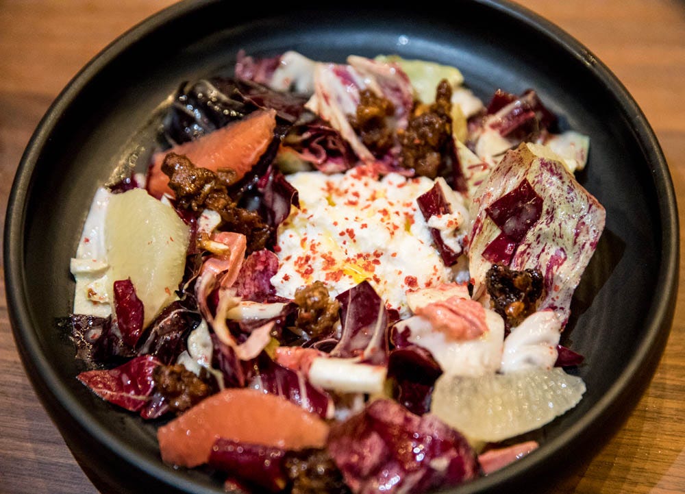 But the winter chicory salad almost topped the crudo. Certainly lush burrata — the highest level of mozzarella — helped. But it was the contrasting play of grapefruit, walnuts and pink peppercorn that gave it all the angles a superlative salad needs: peppery to crunchy, sweet to acidic. Still, appetizer/antipasti kudos may have to go first to warm Parmesan budino, essentially flan-esque savory pudding, laced with sunchokes, hazelnuts, and brown butter, topped with truffles. C’mon. The good news is, all three were fab and totally different from each other.