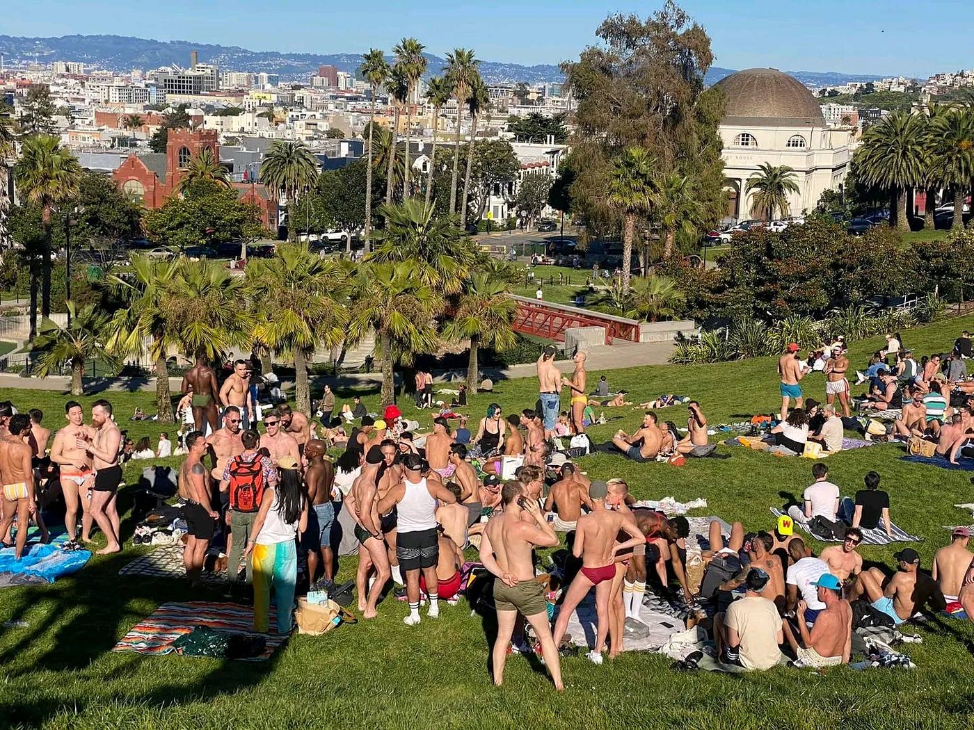 Plus there’s lots and lots scantily-clad bodies, if you’re into that sort of thing. I personally love admiring San Francisco from this location, and if you’re the type who drinks a lot, there’s always that hole in the ground to pee in — what it lacks in privacy, it sure makes up for in convenience.