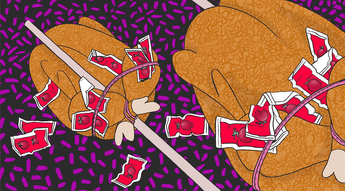 Though Lily and I were the only ones in Hustler, the prerecorded voice continued to encourage “fellas” to buy some private time. Lily and I were more interested in our fried food than a lap dance.