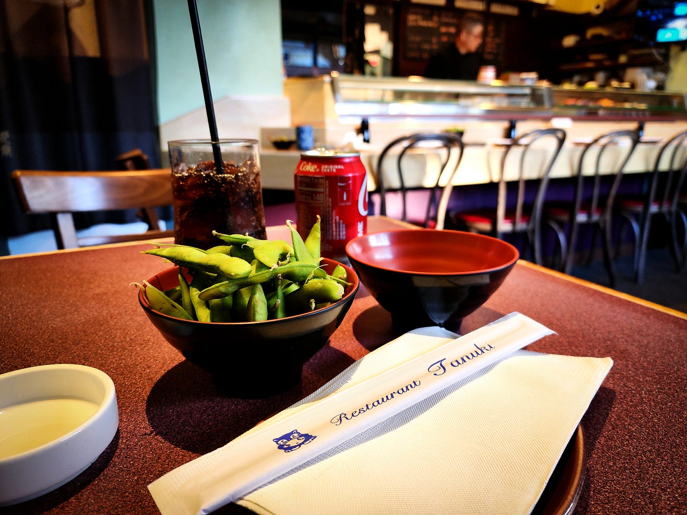 Tanuki helped us achieve harmony, a place we could all find food we liked to eat. Culinary reviewers never seemed to discover the place, which meant we could usually get a table or seats at the bar whenever we walked in with hungry little ones. And so Tanuki became a regular family outing. By dining at an early hour, we often enjoyed the company of other families at nearby tables, all feeling the calming presence that imbued the space and the smiles from happy eaters.