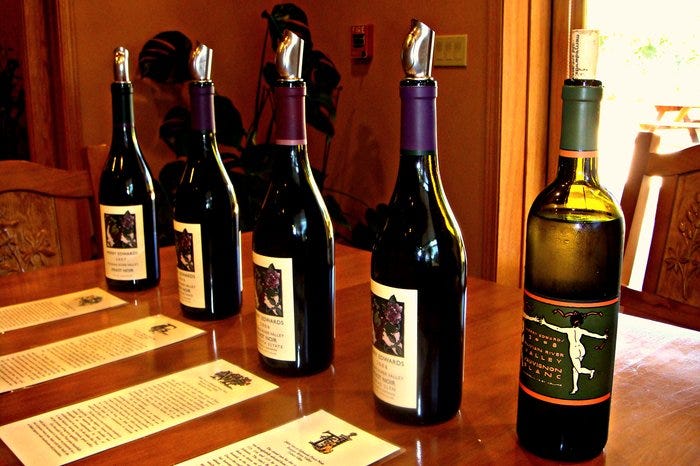 I t wasn’t too long ago that most wineries offered free tastings, but as the crowds grew, so did the prices. Now it’s not uncommon to be standing at a busy winery counter in the middle of summer holding your glass forward for the next pour of a $35 flight while you ask your friends, “What wine are we drinking now?”