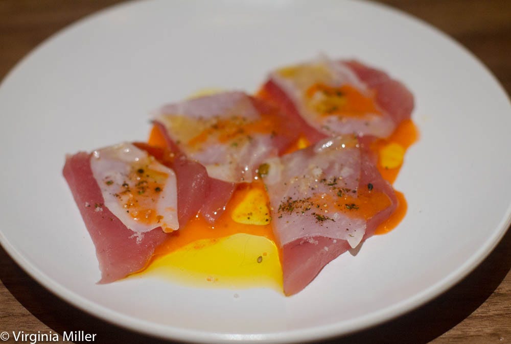 My initial cocktail favorite is the Post Martini. This gorgeous gin martini goes umami-silky with white truffle butter, balanced with dryness from fortified wine and the secret “weapon”: dill-infusion, giving it blessedly herby-savory life. Bourbon-based Shiso Arigato is also a crusher with Amontillado sherry, apple and citrus, given that “extra something” from shiso mint. Further in drink, there are a few local beers on draft, a couple sakes and California wines, alongside wines from France, Italy, Portugal and South Africa.